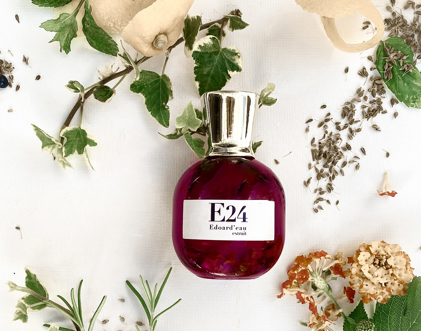 Pro mě jsou tyto stránky románu provoněné opulentními bílými květy Amore & Psiche od Antiqua Firenze — omamným buketem jasmínu, tuberózy, gardénie a bílých růží. Vůně vyvolává pocit požitkářské snídaně v jarní zahradě: smetana, med a pečivo provoněné vodou z pomerančových květů, to vše na pozadí rosou zvlhlých listů a poletujících okvětních lístků.