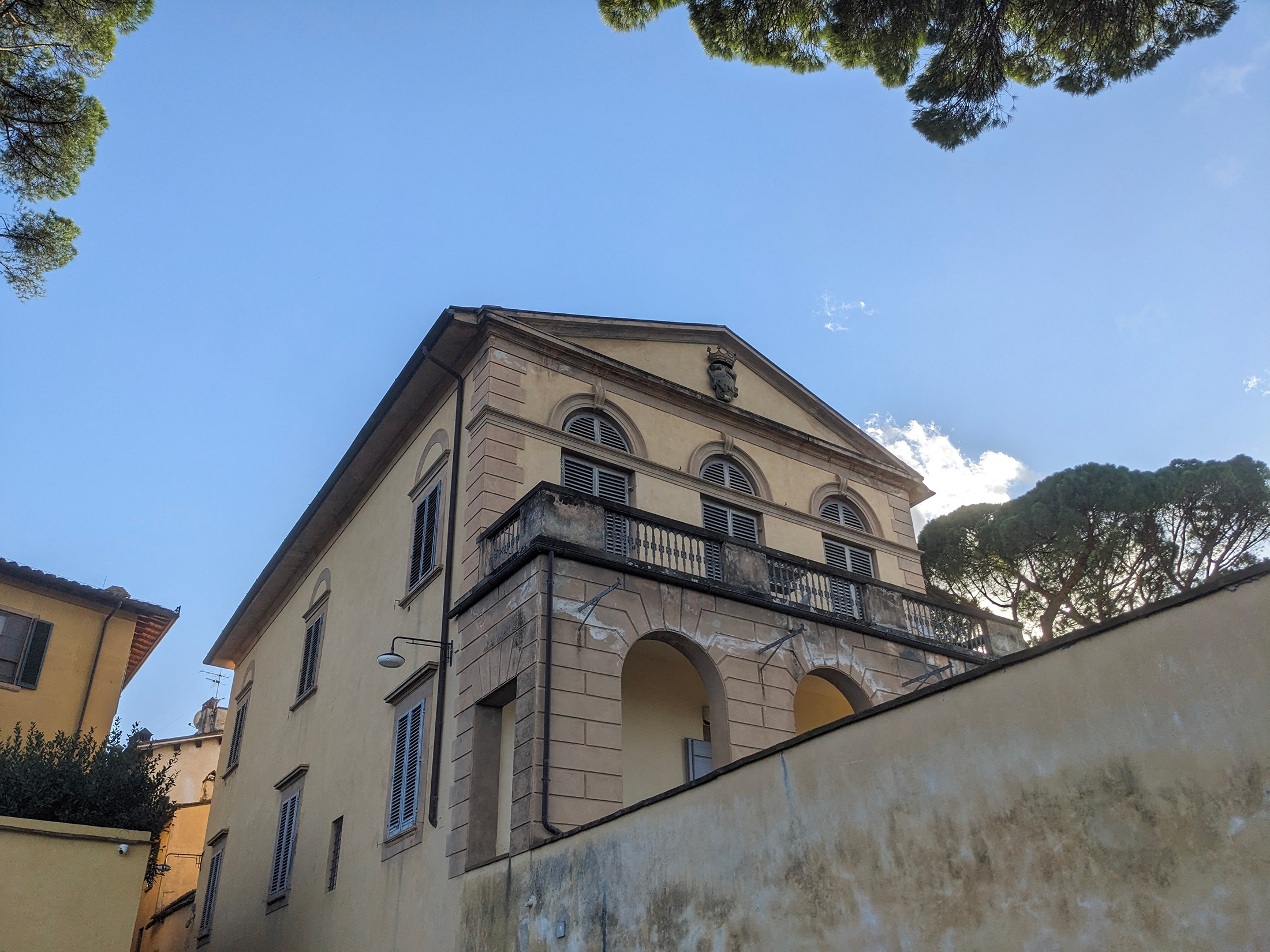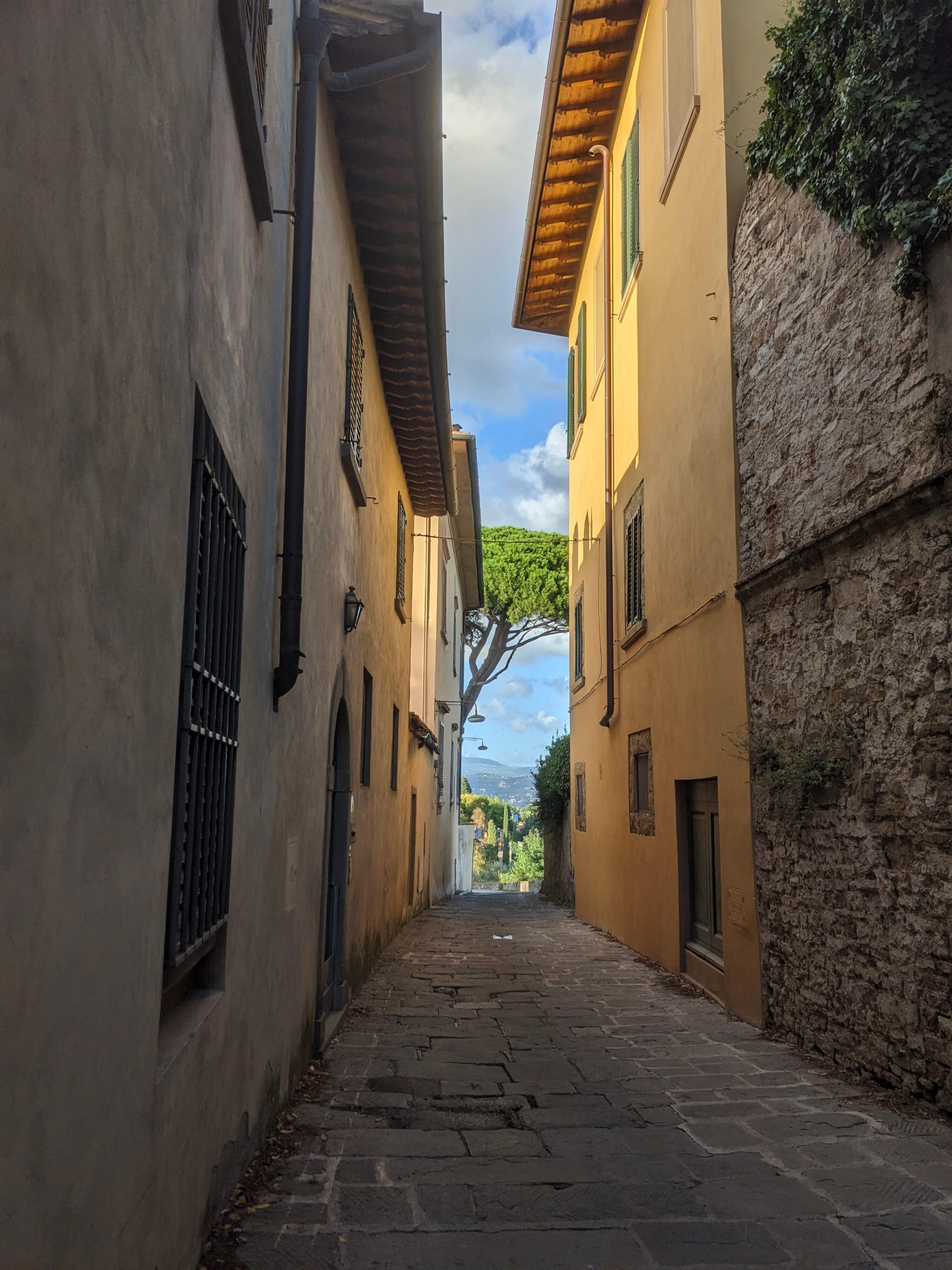 Jedna taková enkláva leží na samém konci Via di Bellosguardo. Úzký průchod mezi Villa Brichieri-Colombi a La Limonaia si tam dodnes uchovává původní kamennou dlažbu. V této odlehlé uličce lze stále objevit relikt staré Florencie: tradiční vinné okénko zasazené do zdiva — tichého svědka slavné minulosti města (na obrázku níže).