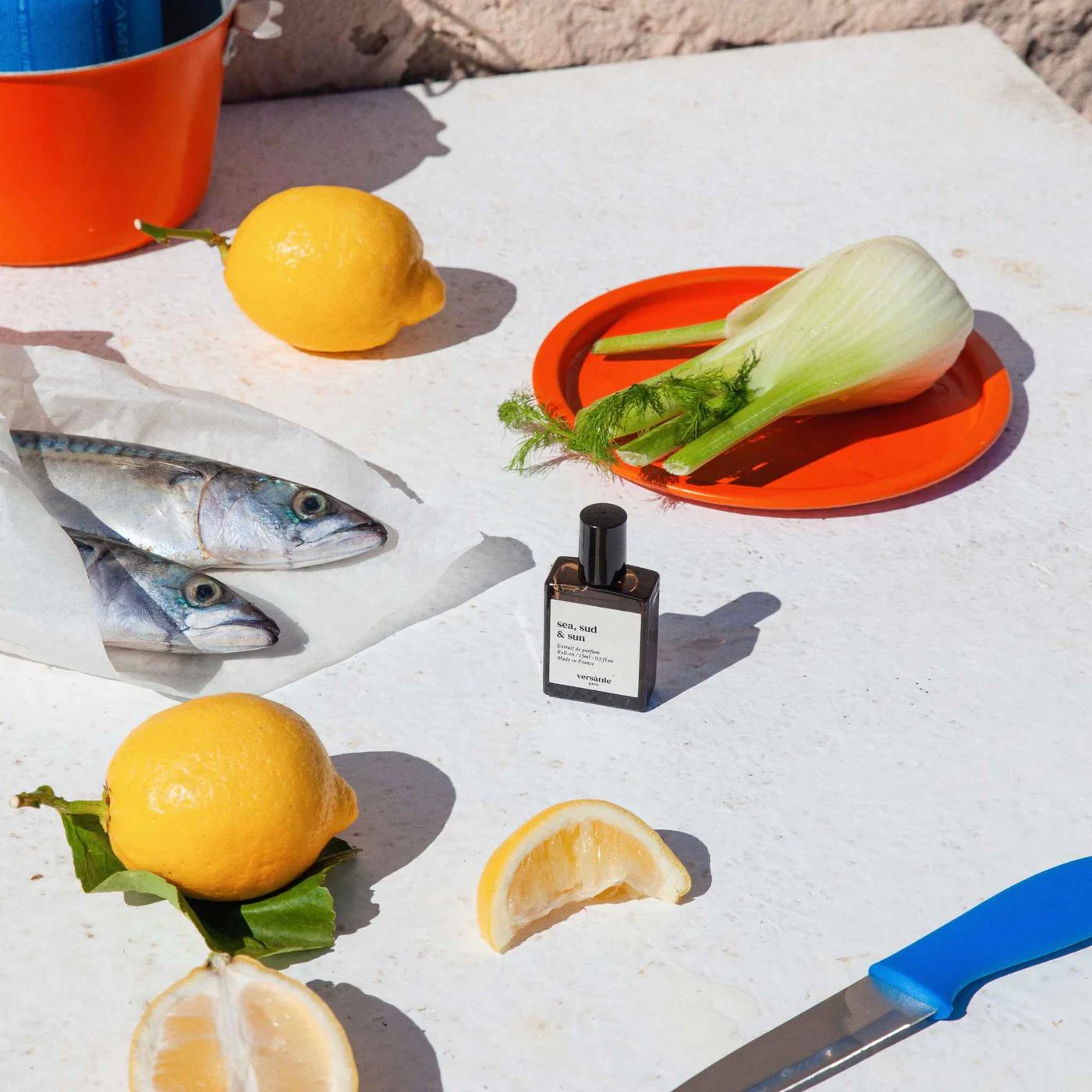 Cesta Středomořím pokračuje a míří na jih Francie s vůní Sea, Sud & Sun. Sedmá vůně Versatile Paris je pomalu se rozpalující vůně, která se postupně odhaluje jemnými nuancemi. Jak popisují majitelé značky, je zde směs oceánské svěžesti, ovoce, mléka a pastisu, zatímco jemnosti briošky a oříškového nugátu ustupují do pozadí. Kompozice parfému je založena na kombinaci fíku a anýzu, neobvyklé směsi, která vytváří živý teplotní kontrast. Nóta fíku je plná a hmatatelná, s nádechem pomerančového květu a citrusů. Anne-Sophie Behaghel umně spojila vůni listů a ovoce s krémovými, svěžími a lehce nahořklými dřevitými podtóny. Sea, Sud & Sun připomíná vůni zralých bílých fíků a každý, kdo ochutnal tyto zralé plody se zelenkavou slupkou, nepochybně pozná jejich podstatu. Mléčné podtóny v základních tónech parfému dodávají hladkou, pokožku objímající krémovost. A tato mléčná a šťavnatá ovocnost se dokonale snoubí se sladkým, pronikavě bylinným anýzovým akordem.