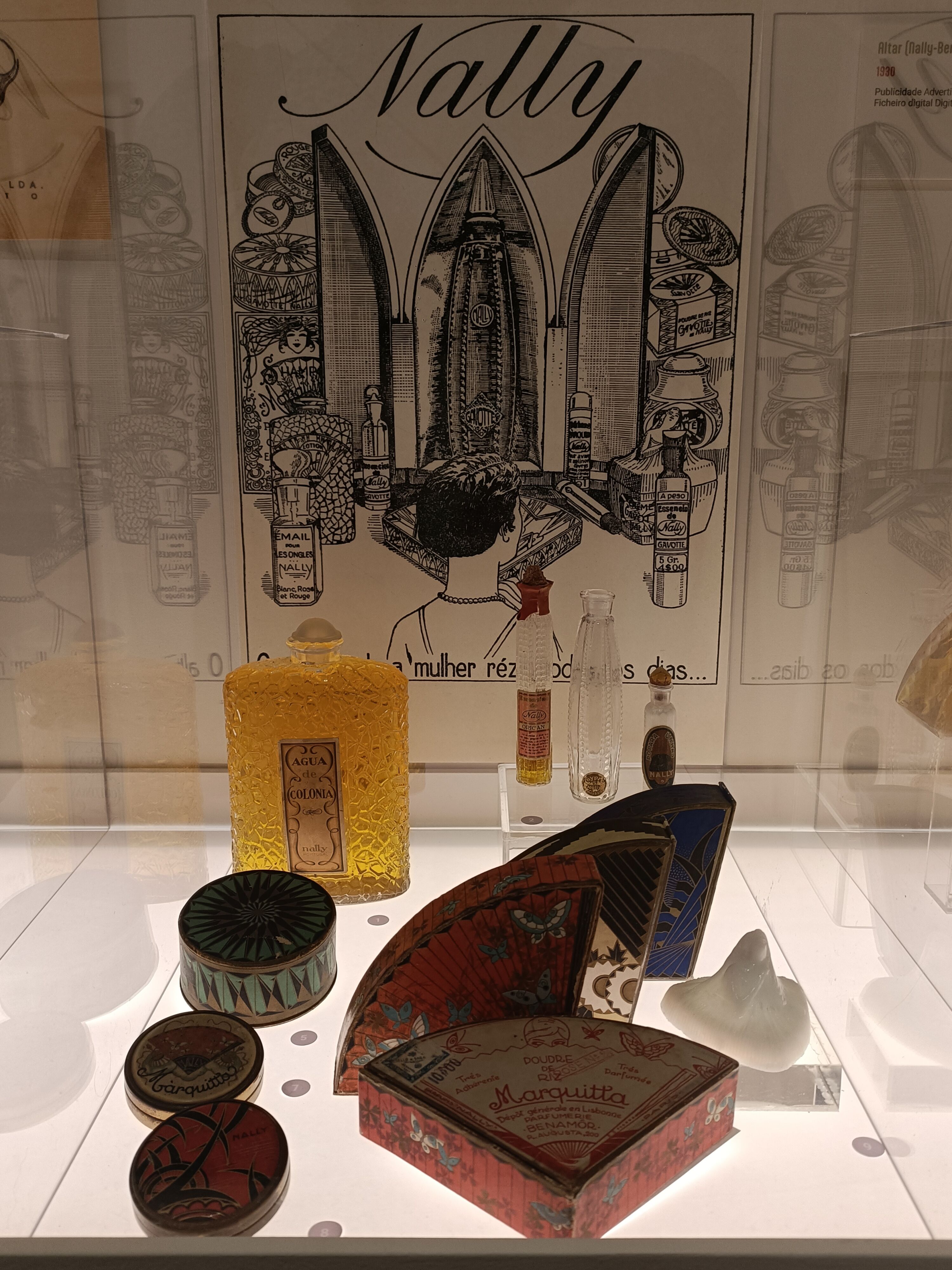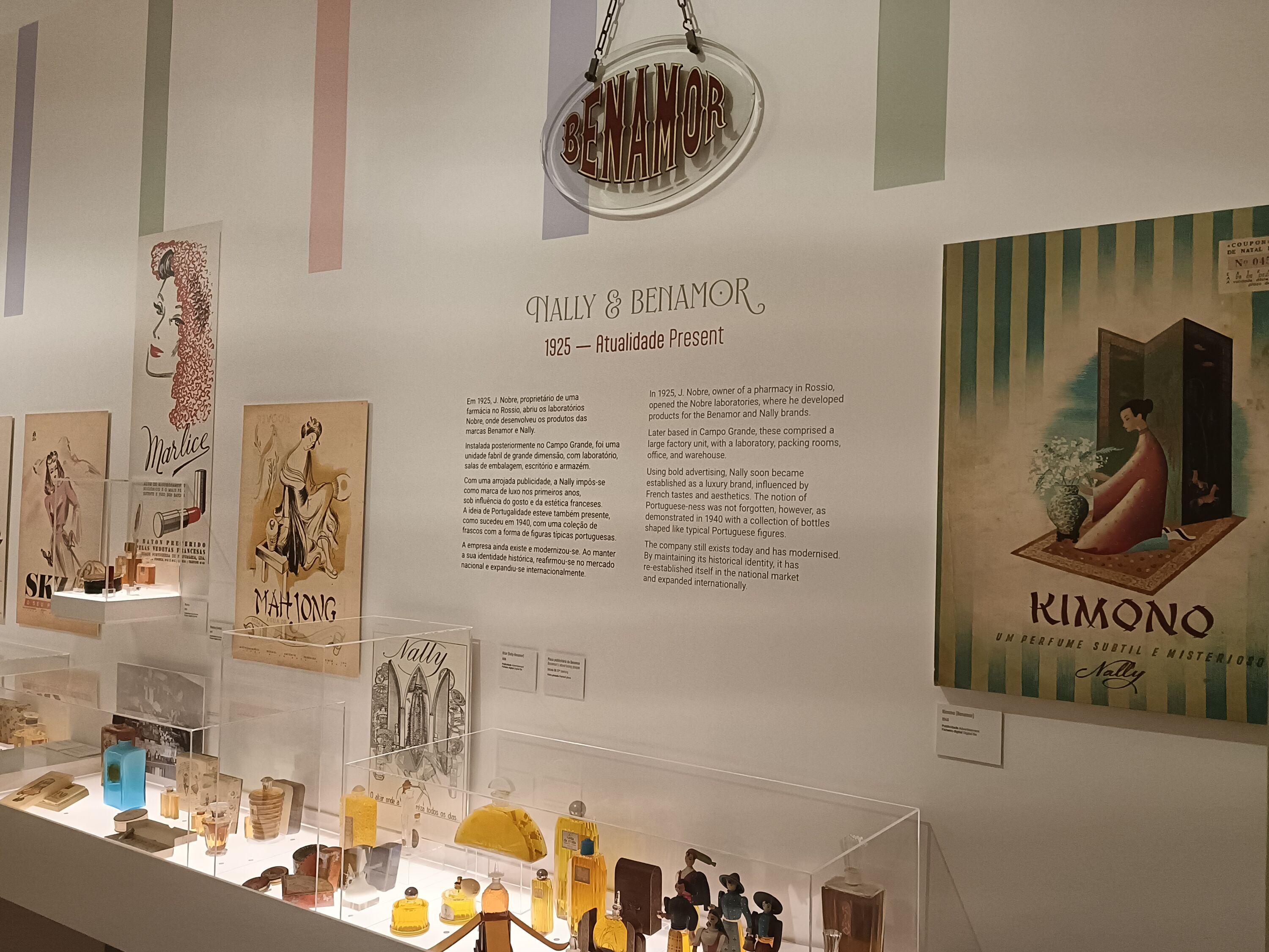 Většina těchto firem, kolísajících mezi kosmopolitismem Paříže či New Yorku, exotikou vzdálených míst a tradičními portugalskými hodnotami, prosperovala za diktatury režimu Estado Novo, který skončil v roce 1974. V 80. letech 20. století téměř všechny tyto značky podlehly záplavě mezinárodních výrobků na trhu. Výstava se zaměřuje na značky jako Couraça (1884-1990), Madame Campos (1911-1988), Nally a Benamor (1925 až do současnosti), ale představuje i další slavné i neznámé značky. To vše zabírá jen jednu malou místnost, ale lahví a kuriozit je zde nepřeberné množství. Zde je krátká fotoreportáž z výstavy: