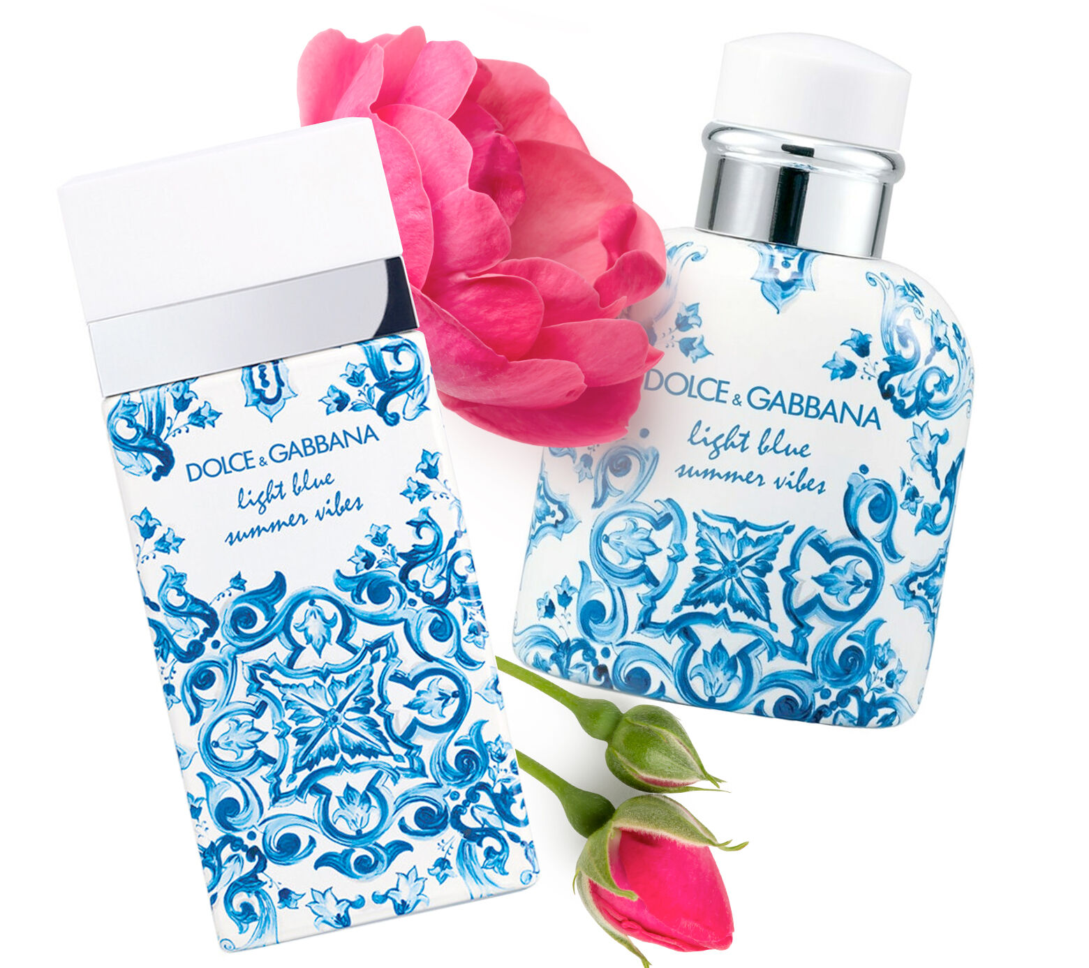 U svého posledního dua jsem se řídila zásadou "živé vizuální stránky a snadné nositelnosti." A dvojice, která této myšlence odpovídá nejlépe, je Light Blue Summer Vibes od Dolce & Gabbana. Bílo-modré flakony připomínající portugalské dlaždice azulejo se na pultech s parfémy krásně vyjímají a evokují myšlenky na nadcházející léto. Pokud jde o samotné vůně, jsou to zářivé citrusové kompozice – přímočaré, příjemné a ideální pro každodenní nošení. Ne, nenesou v sobě romantické očekávání příchodu jara, ale nabízejí bezstarostnou, sluncem prozářenou atmosféru letní dovolené. Navíc se navzájem skvěle doplňují.