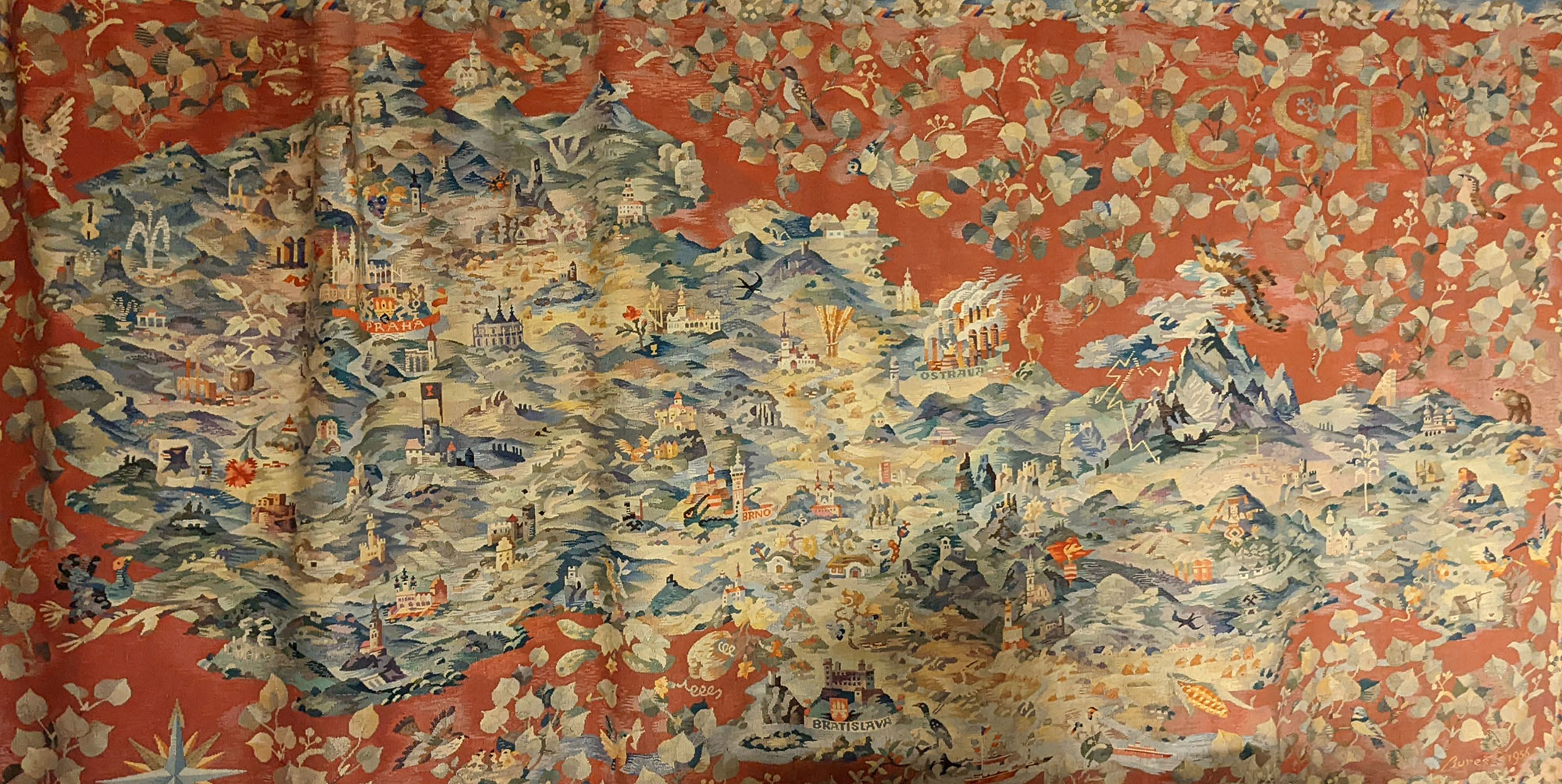 Tapiserie s mapou Československa, 50. léta 20. století, zakázka československého ministerstva obrany.