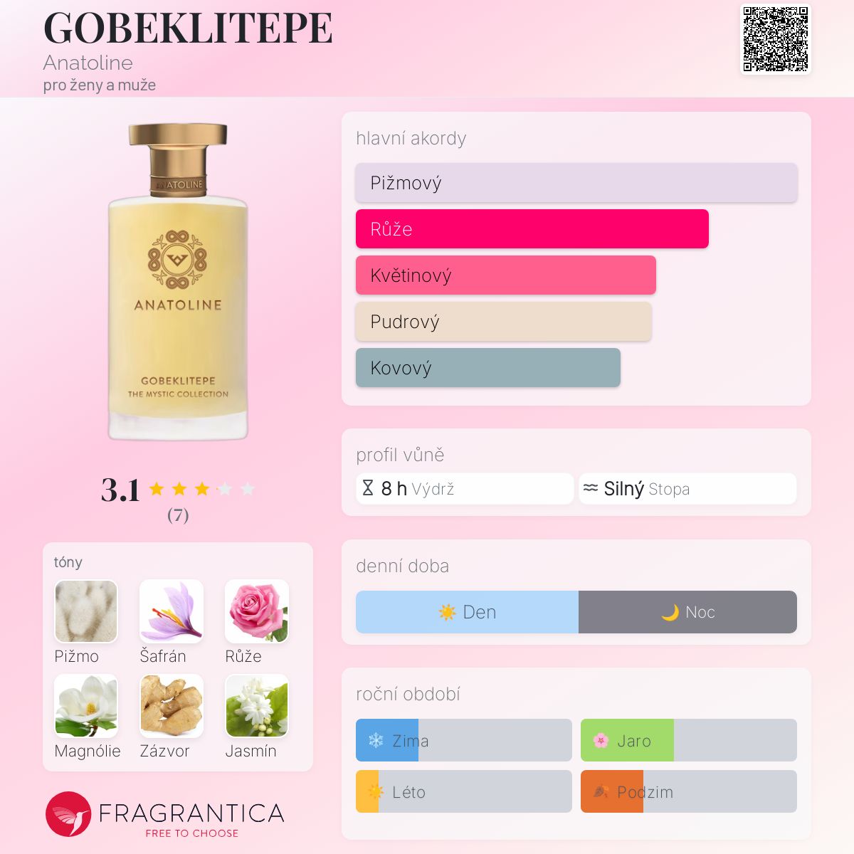 GOBEKLITEPE podle Anatoline je Orientální Floral vůně pro ženy a muže. GOBEKLITEPE byl/a uveden/a v roce 2023. "Nosem" za touto vůní je Hüseyin Erdoğmuş. Vrchní tóny jsou Šafrán a Zázvor; střední tóny jsouTurecká růže, Magnólie a Jasmín Sambac ; základní tóny jsou Pižmo a Jantar (ambra).
