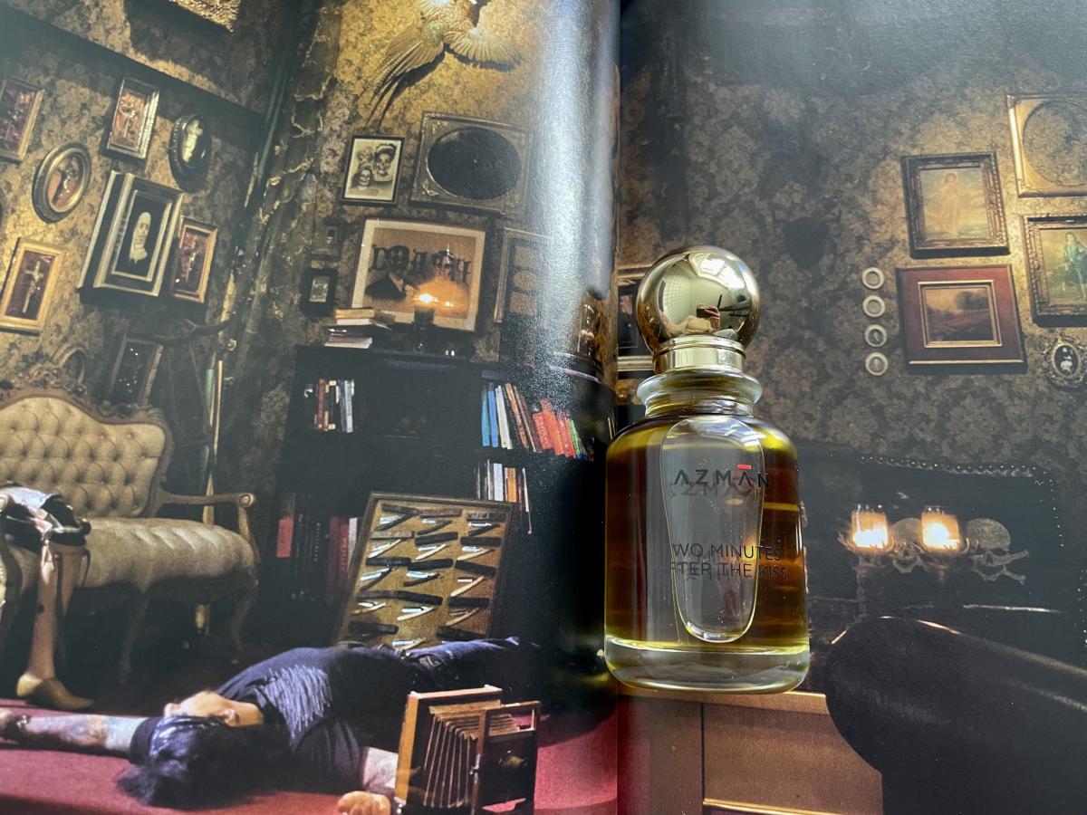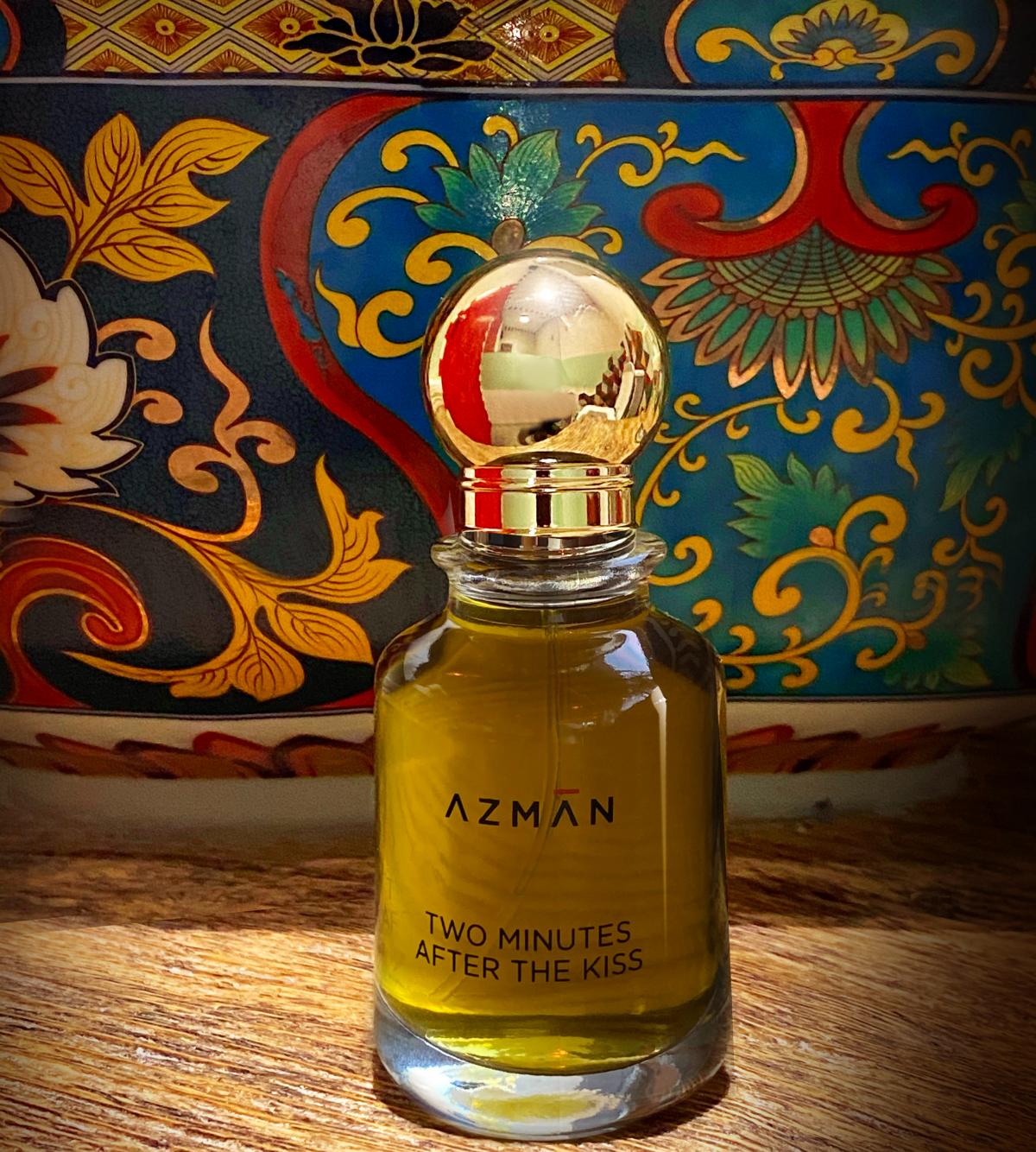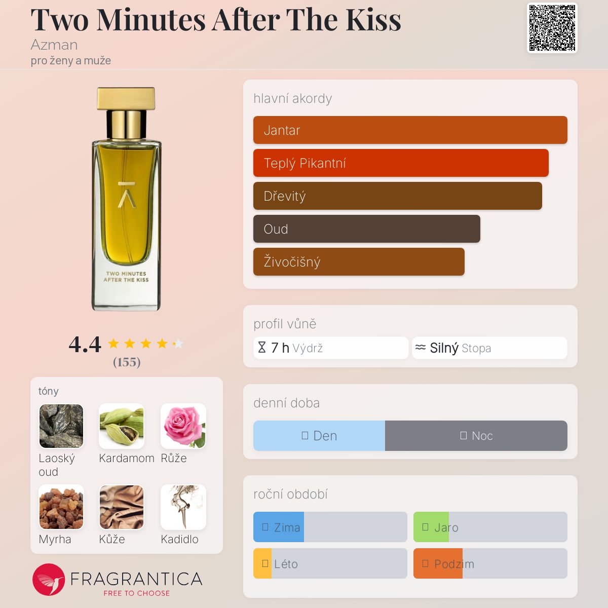 Two Minutes After The Kiss podle Azman je Floral Woody Musk vůně pro ženy a muže. Two Minutes After The Kiss byl/a uveden/a v roce 2021. "Nosem" za touto vůní je Cristiano Canali. Vrchní tóny jsou Guatemalský kardamom, Turecká růže, Kadidlo a Nové koření; střední tóny jsouLaoský oud, Turecká růže, Myrha, Včelí vosk a List indonéského pačuli ; základní tóny jsou Laoský oud, Kůže, Santalové dřevo, Pižmo, Španělské labdanum, Ambrocenide a Haitský vetiver.
