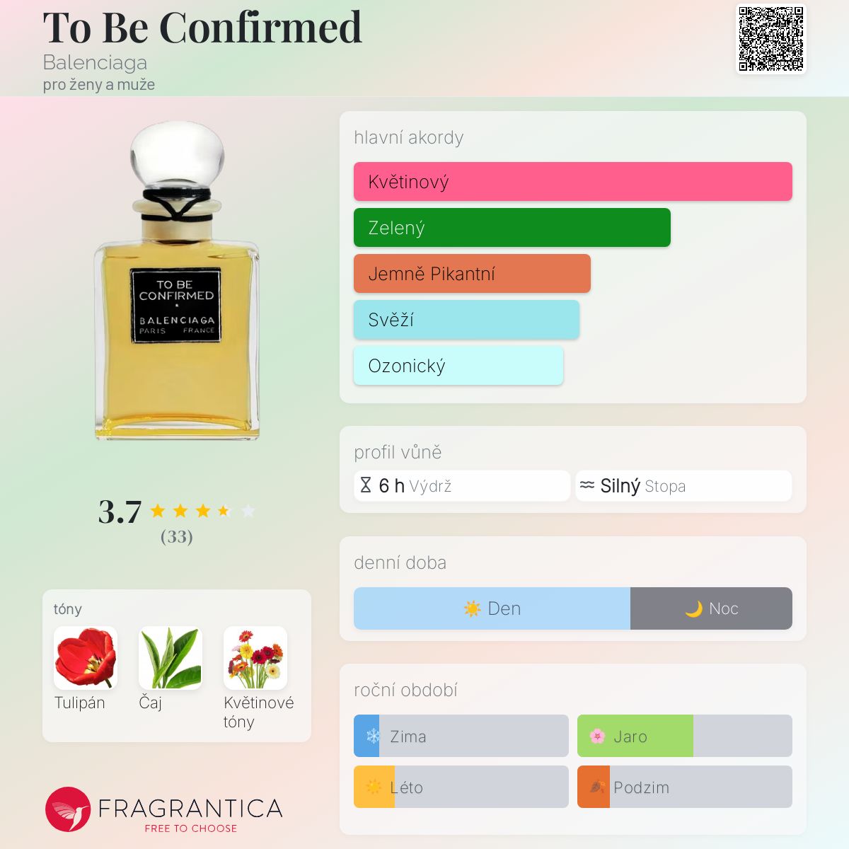 To Be Confirmed podle Balenciaga je Floral vůně pro ženy a muže. Toto je nová vůně. To Be Confirmed byl/a uveden/a v roce 2025.