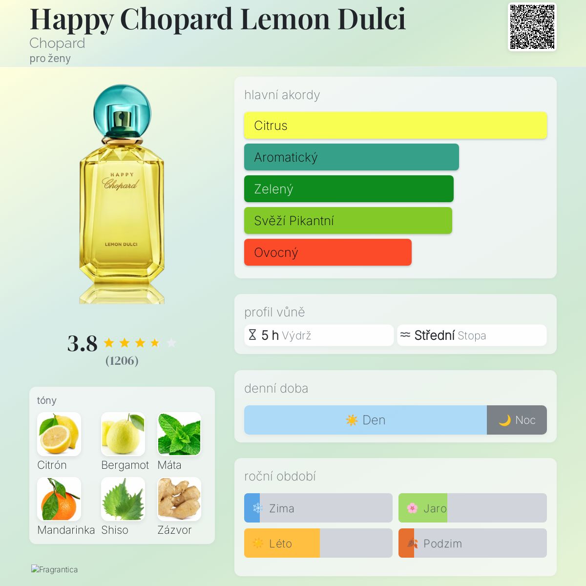 Citron je sladký, bez hořkosti, spíše uzbecký). V základu není tak citrusově svěží a jednoduchý. Krásné otevření a plný parfémový buket. Neslyším jablko, ale květiny, mátu, možná mango...... Je přirovnávána k Light Bluea.... To si nemyslím, Happy Lemon má mnohem bohatší základ a zajímavější úvod.