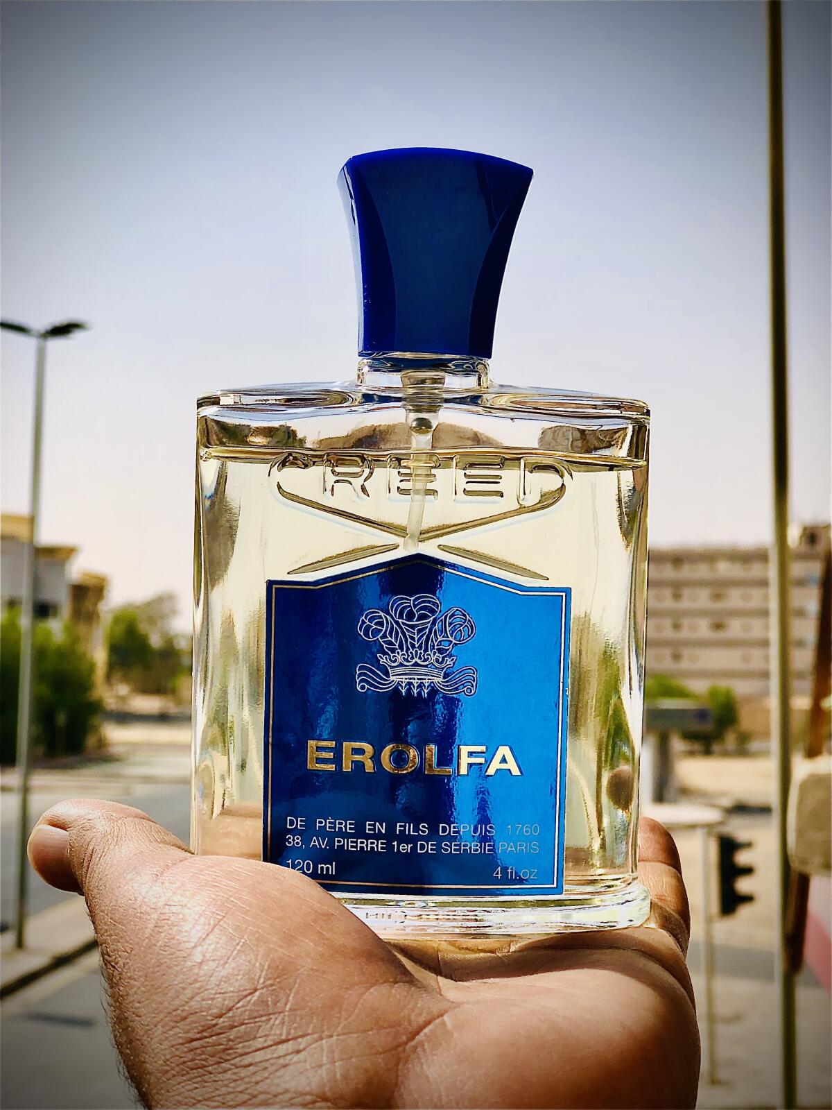 Citrusová, květinová, vodní. Svěží bílý klenot, který září mezi jemností CK One a silnou a inspirativní Aqua Universalis Forte, s jemnou zelení a sametovým nádechem, který tyto dvě vůně nemají. Zde je však vše křišťálově čisté, téměř průzračné, tak lehké a jemné. Luxusní Erolfa je velmi jemný, příjemný a čistý parfém: určitě klasika, která je povzbuzující a měla by se používat v boji proti horku horkých dnů. Vynikající vůně po koupeli. Další dobře sestavený a krásný Creed