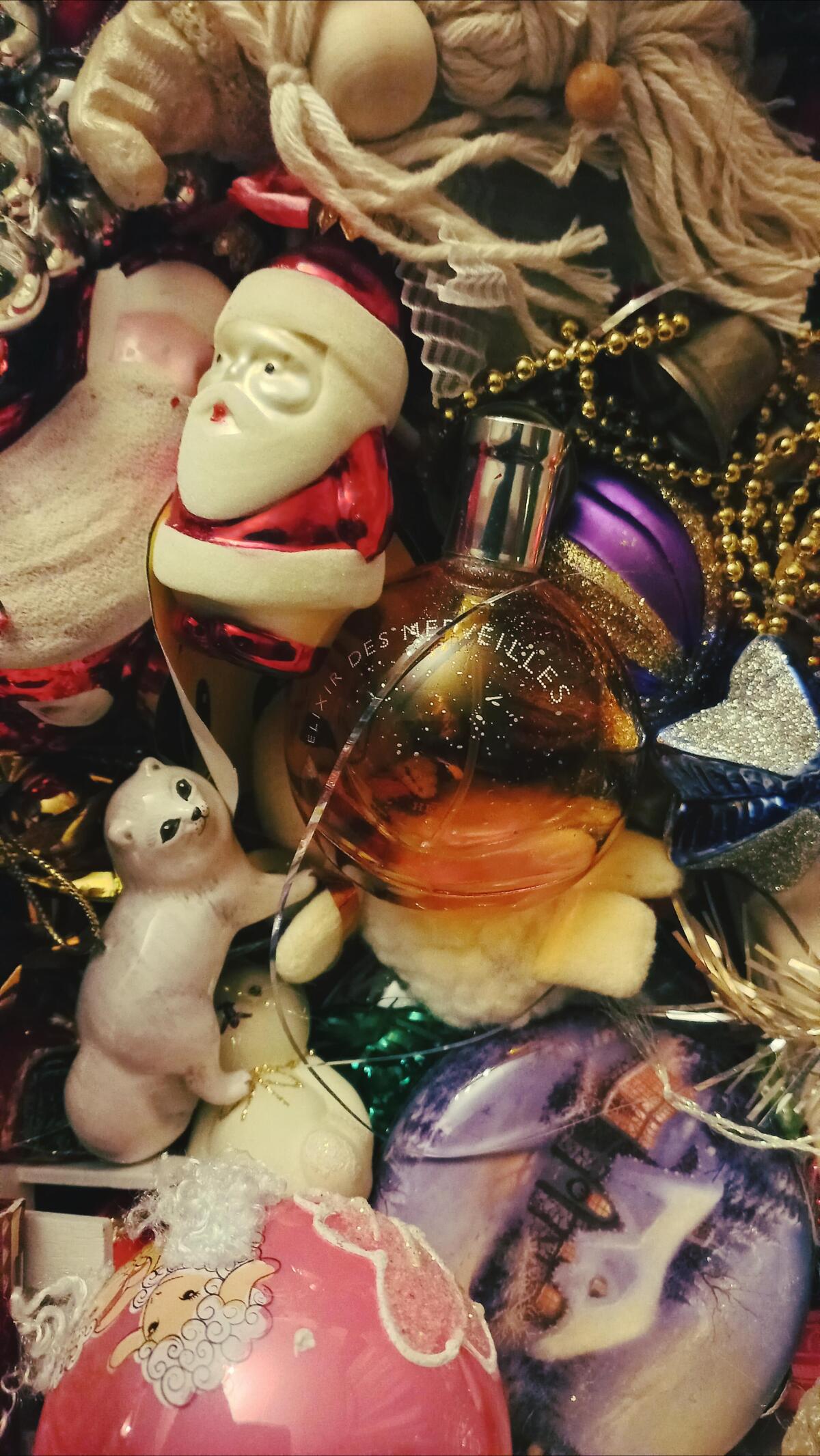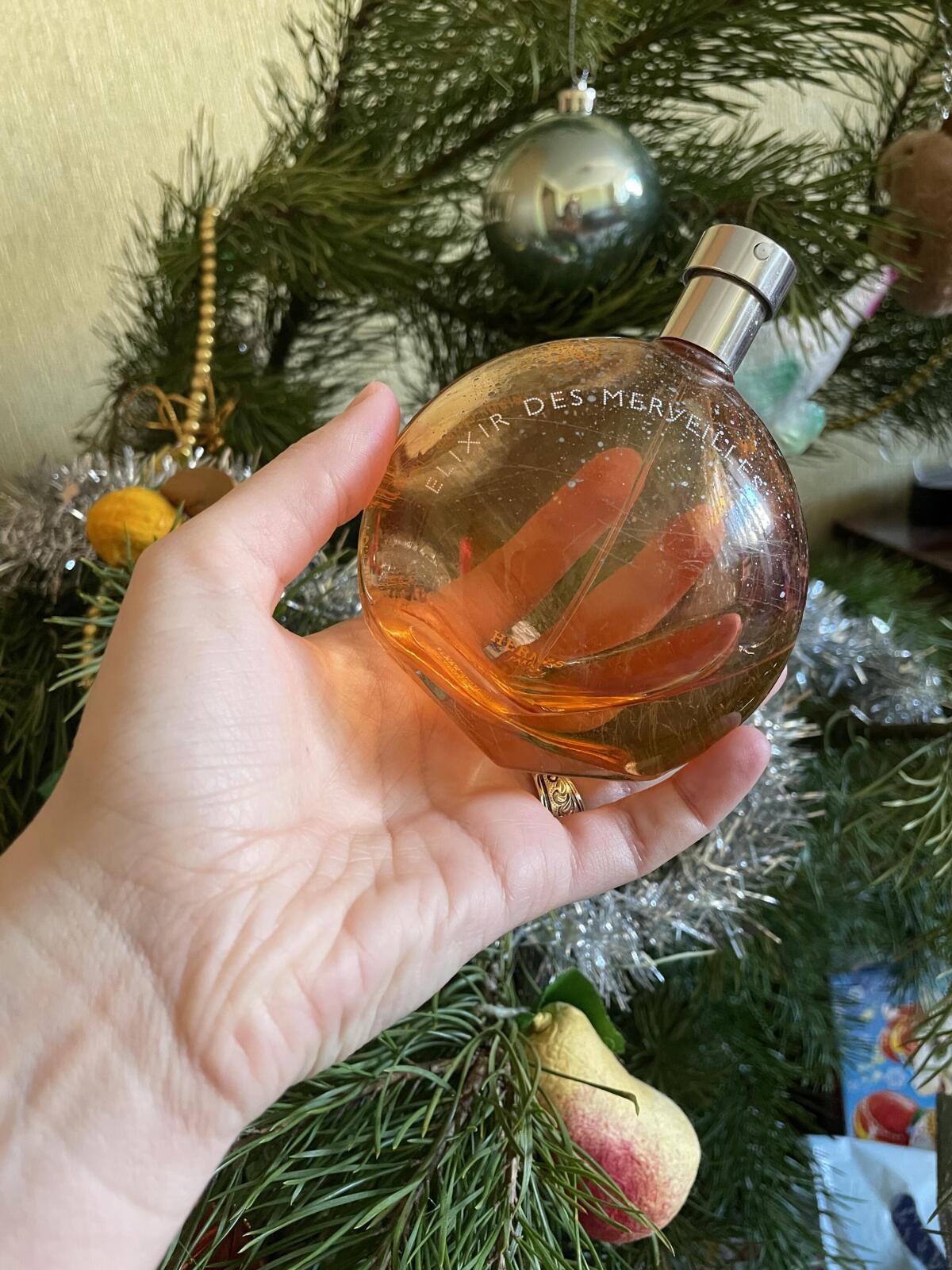 Každý rok 31. prosince. Dávám si Elixir de Merveille. Je to ta nejsilnější novoroční vůně, vůně vánočních stromků, borovicového jehličí, mandarinek. Je to můj osobní stroj času. Z nějakého důvodu mě Elixir vrací do dětství, i když tehdy ještě nemohl existovat. Mladý táta, mladá máma, já, malá holčička, čekání na zázraky a Silvestr. V místnosti je slyšet smích a hlasy hostů. Na vánočním stromku hoří girlandy, třpytí se pozlátko, je slyšet vůně svíček a hraje tango deska "Champagne Splash".....