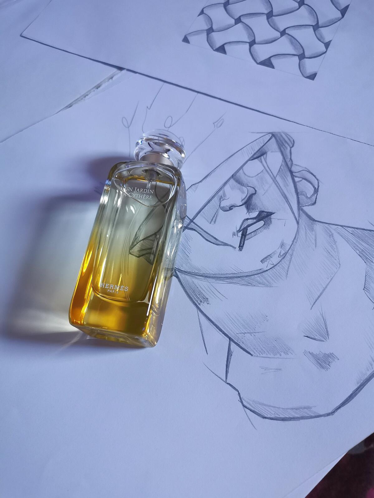 (1) Tento je příliš zajímavý, téměř nejtypičtější ze všech Jardin de Hermès! Hned od začátku působí luxusním osvěžujícím dojmem jako všichni její starší bratři, se zelenkavými nuancemi, zapracovanými do rovnováhy věci, spojujícími vše, co přijde později, aniž by se ztratila identita místa, odkud pochází, Maison Hermès.