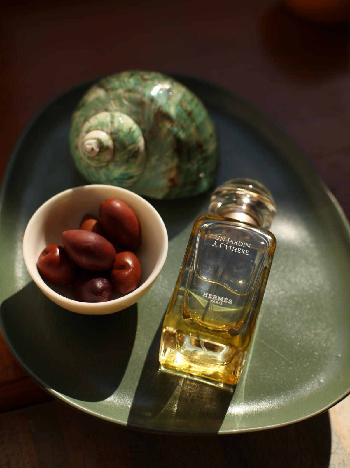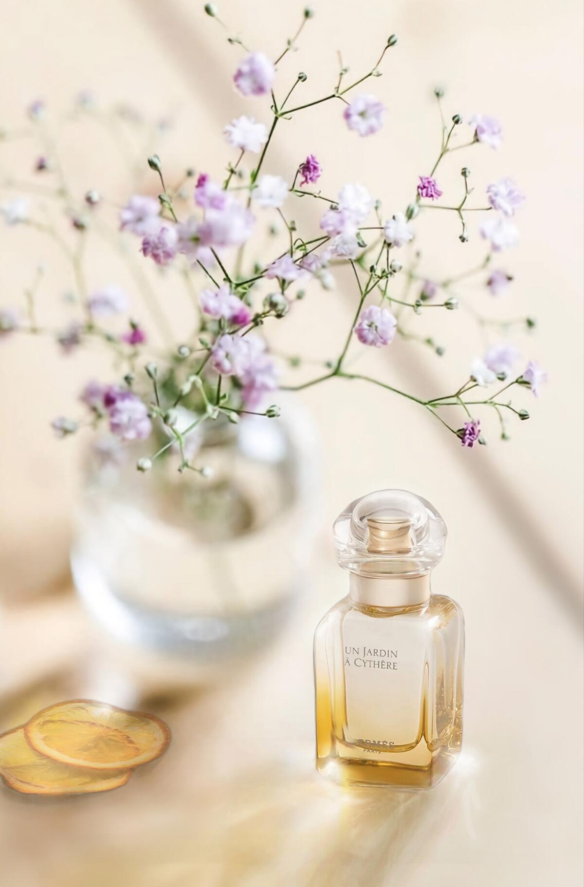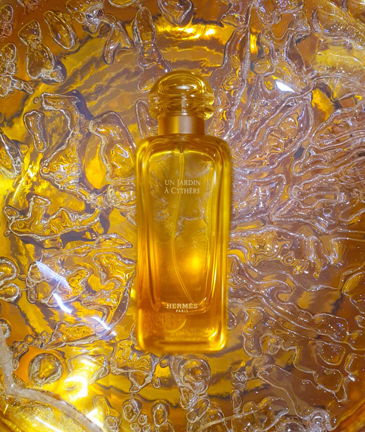 Un Jardin à Cythère. Nový rok, nové mistrovské dílo Christine Nagel. Skvělá parfumérka si nás až příliš dobře zvyká, možná ještě lépe, než to udělala už Ellena. Jako obvykle není nic ponecháno náhodě a nejsou zde žádné nedokonalosti, nejasnosti jakéhokoli druhu ani drobnosti. Jardin à Cythère skutečně není jen další zelenou hesperidií, ani květinovou vůní, jako je Cartierova Rivières: je dřevitá, aromatická a dokonce lehce krémová. V úvodu se objevují hořké citrusy, připomínající bigarade, mandarinku a bergamot, a hned poté následuje zvláštní souhra bazalky smíšené s tóny prachové pšenice. Nejsprávněji evokuje "trávu", jak Maison Hermès upřesňuje ve své tiskové zprávě. A je to výrazně vyhledávaná vůně, a to do té míry, že tvoří olfaktorický podpis nového modelu Zazen od Roberta Pigueta. Tím však překvapení Christine Nagel nekončí (to by bylo na láskyplné příliš málo...) a objevuje se zde něžný akord výjimečně krémového olivového dřeva, s nímž je suchý a moučný tón trav dokonale vyvážen. Et voilà! Výsledkem je malé mistrovské dílo chuti, talentu a dovednosti. Nepřehlédnutelné je také provedení: doba trvání je dobrá a projekce, i když není výjimečná, je ráda odpuštěna příjemným suchým puchem, který jako by téměř chtěl hladit a mazlit se s pokožkou.