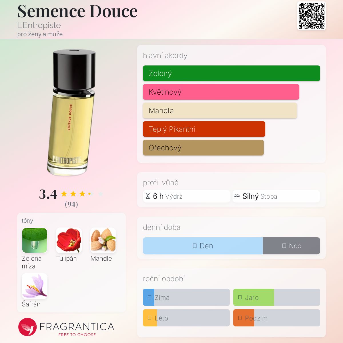 Semence Douce podle L'Entropiste je Floral vůně pro ženy a muže. Toto je nová vůně. Semence Douce byl/a uveden/a v roce 2025. "Nosem" za touto vůní je Bertrand Duchaufour.