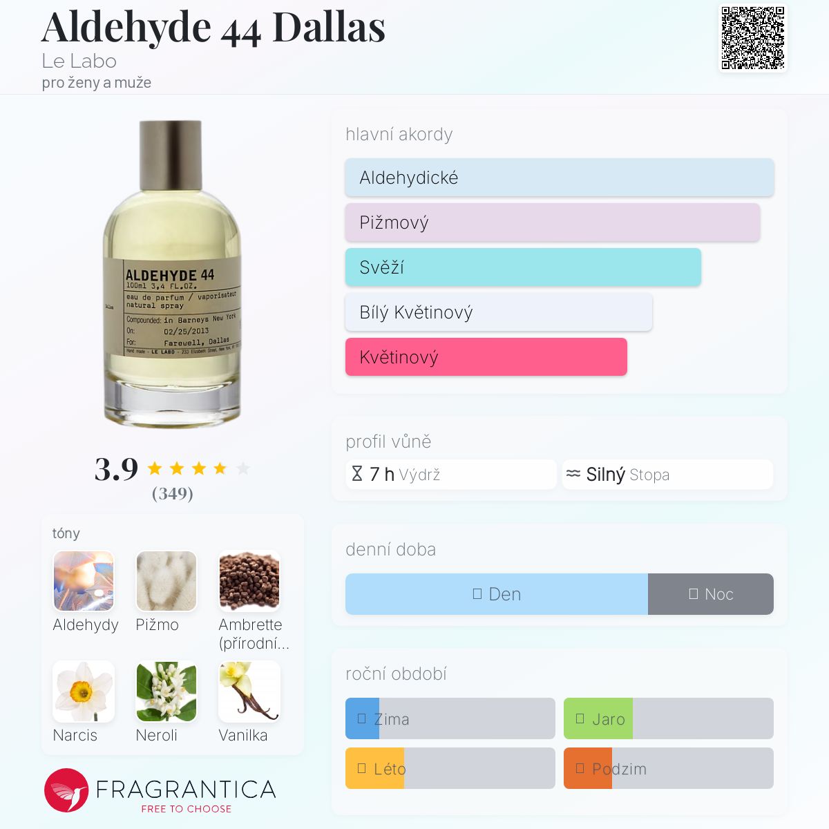Aldehyde 44 Dallas podle Le Labo je Floral Woody Musk vůně pro ženy a muže. Aldehyde 44 Dallas byl/a uveden/a v roce 2006. "Nosem" za touto vůní je Yann Vasnier.