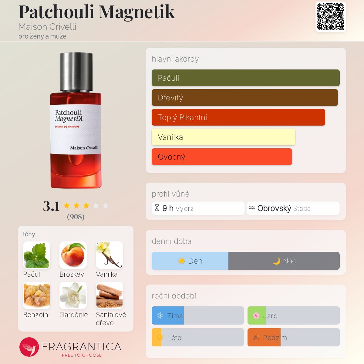 Patchouli Magnetik podle Maison Crivelli je vůně pro ženy a muže. Patchouli Magnetik byl/a uveden/a v roce 2022. "Nosem" za touto vůní je Quentin Bisch.