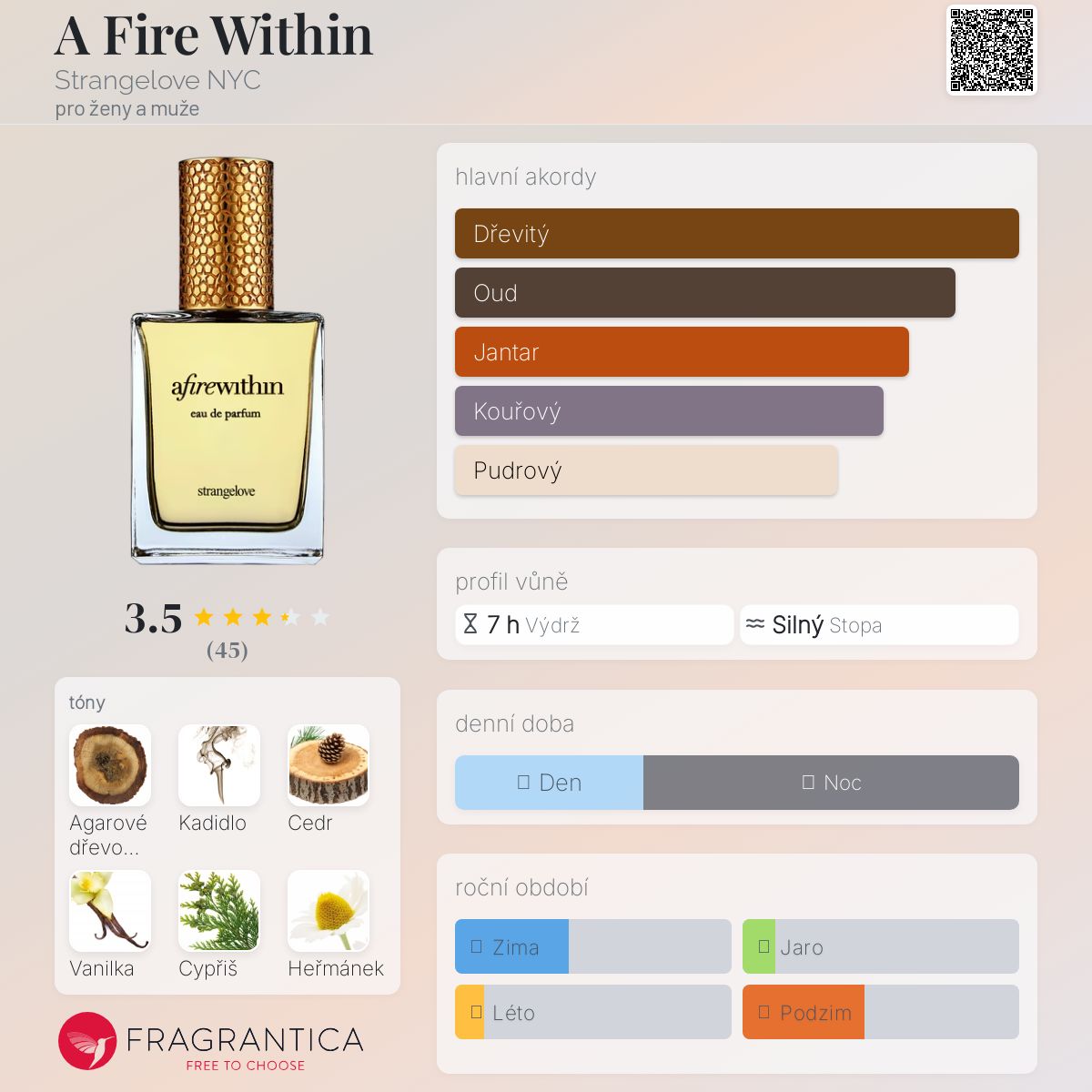 A Fire Within podle Strangelove NYC je vůně pro ženy a muže. Toto je nová vůně. A Fire Within byl/a uveden/a v roce 2024. "Nosem" za touto vůní je Hamid Merati-Kashani.