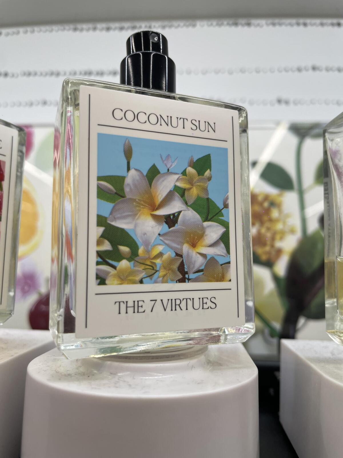 Coconut Sun podle The 7 Virtues je vůně pro ženy a muže. Coconut Sun byl/a uveden/a v roce 2023. Coconut Sun byl/a vytvořen/a Kamila Lelakova a Angela Stavrevska. Vrchní tóny jsou Kokosová voda a Citrusy; střední tóny jsouPlumérie, Mořská sůl, Egyptský jasmín a Růže ; základní tón je Vanilka.