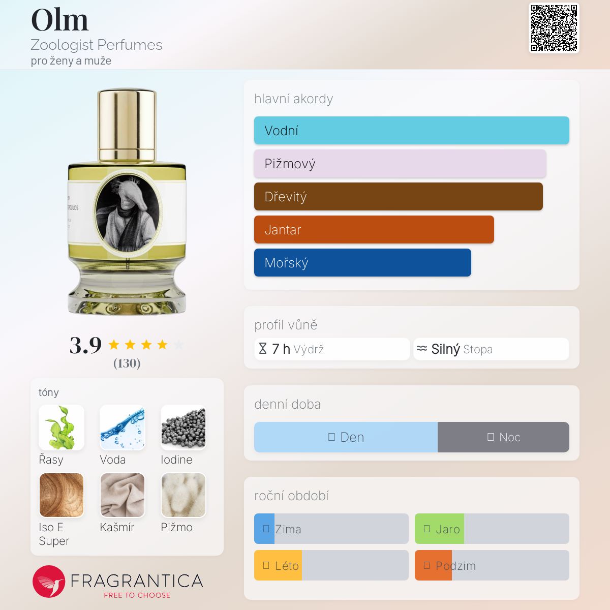 Olm podle Zoologist Perfumes je Woody Aquatic vůně pro ženy a muže. Toto je nová vůně. Olm byl/a uveden/a v roce 2025. "Nosem" za touto vůní je Spyros Drosopoulos.