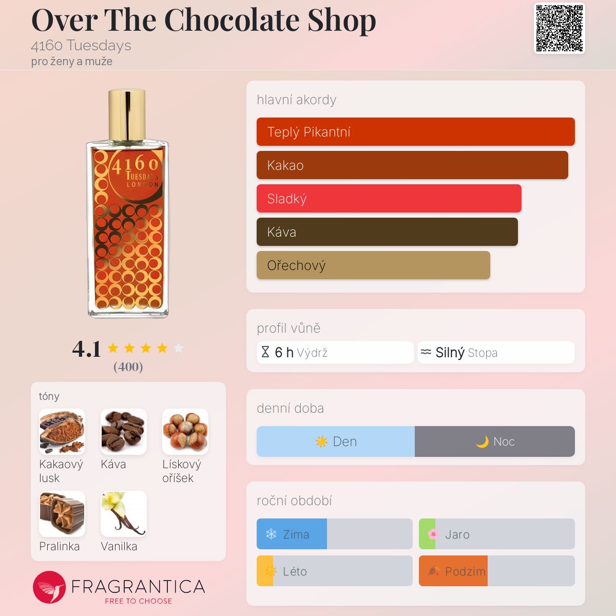 Over The Chocolate Shop podle 4160 Tuesdays je Orientální Vanilla vůně pro ženy a muže. Over The Chocolate Shop byl/a uveden/a v roce 2018. "Nosem" za touto vůní je Sarah McCartney.