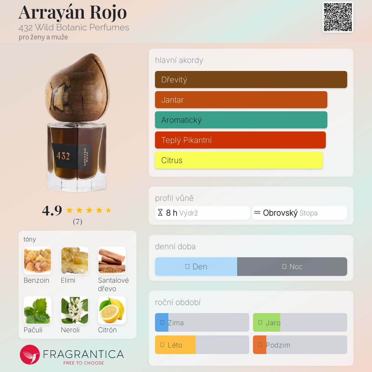 Arrayán Rojo podle 432 Wild Botanic Perfumes je vůně pro ženy a muže. Toto je nová vůně. Arrayán Rojo byl/a uveden/a v roce 2025. "Nosem" za touto vůní je Joel L. Martínez.