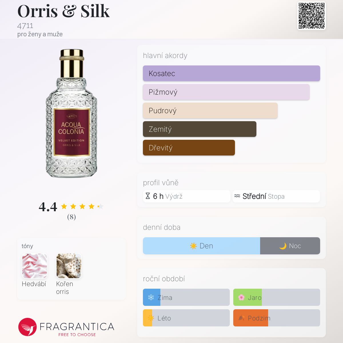 Orris & Silk podle 4711 je Floral vůně pro ženy a muže. Toto je nová vůně. Orris & Silk byl/a uveden/a v roce 2024. "Nosem" za touto vůní je Florian Gallo.