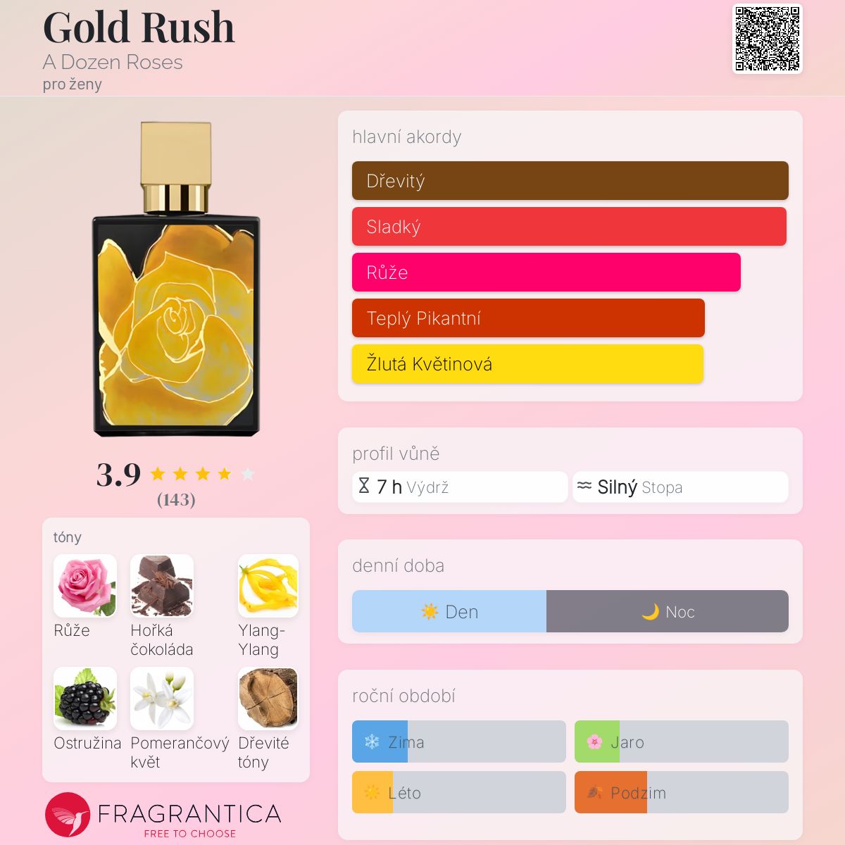 Gold Rush podle A Dozen Roses je Orientální Floral vůně pro ženy. Gold Rush byl/a uveden/a v roce 2011. "Nosem" za touto vůní je Lynn Emmolo.