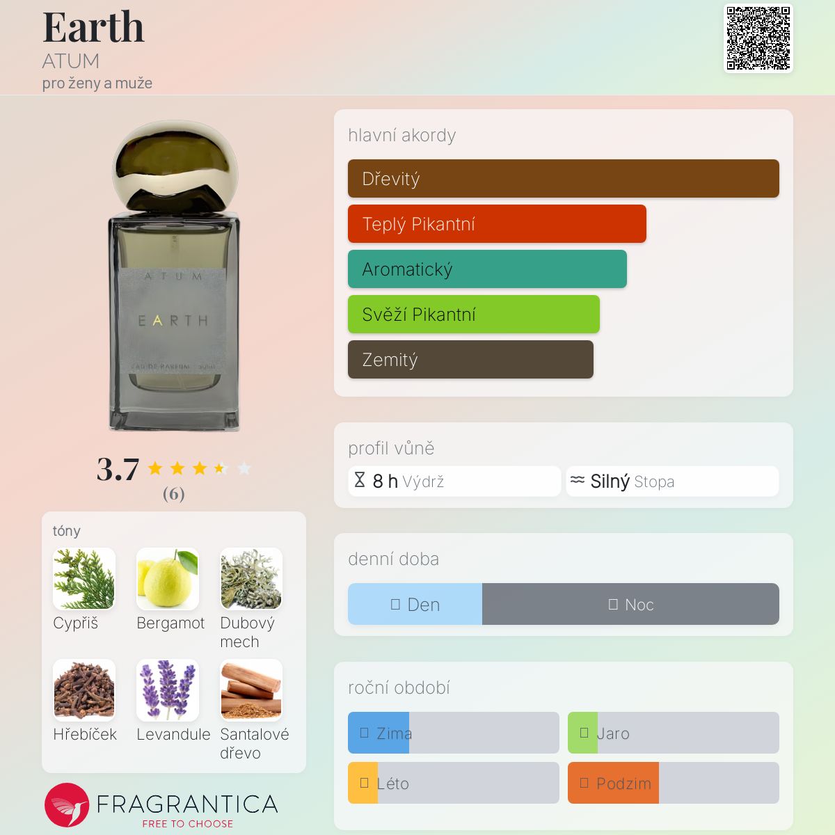 Earth podle ATUM je Woody Aromatic vůně pro ženy a muže. Earth byl/a uveden/a v roce 2021. "Nosem" za touto vůní je Kristin Scott.