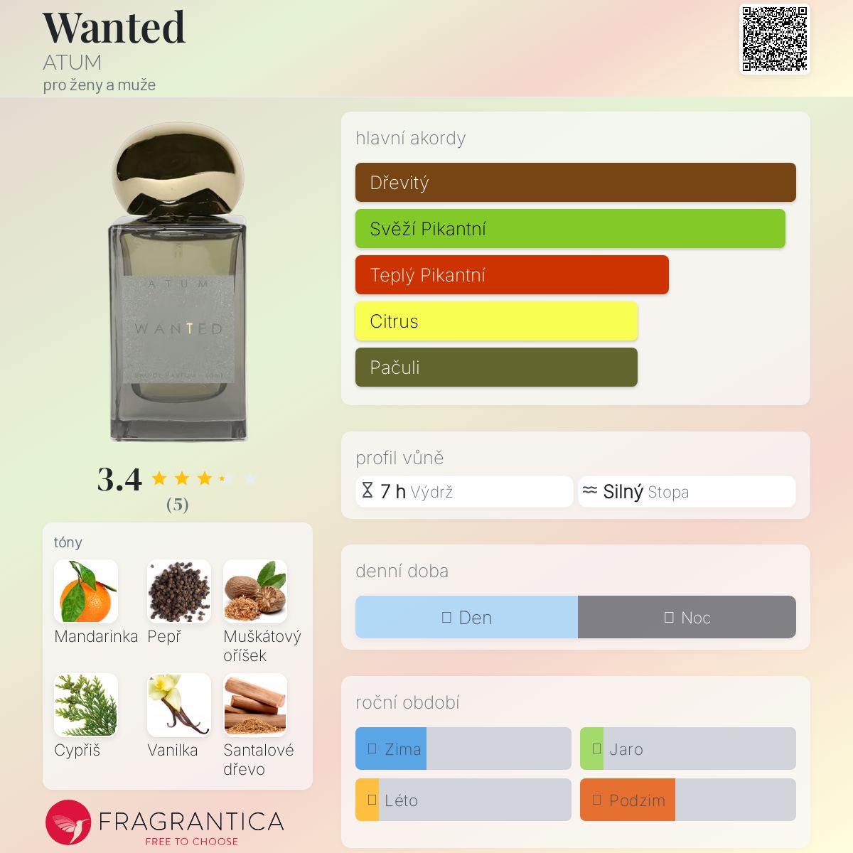 Wanted podle ATUM je Aromatic vůně pro ženy a muže. Wanted byl/a uveden/a v roce 2021. "Nosem" za touto vůní je Kristin Scott.