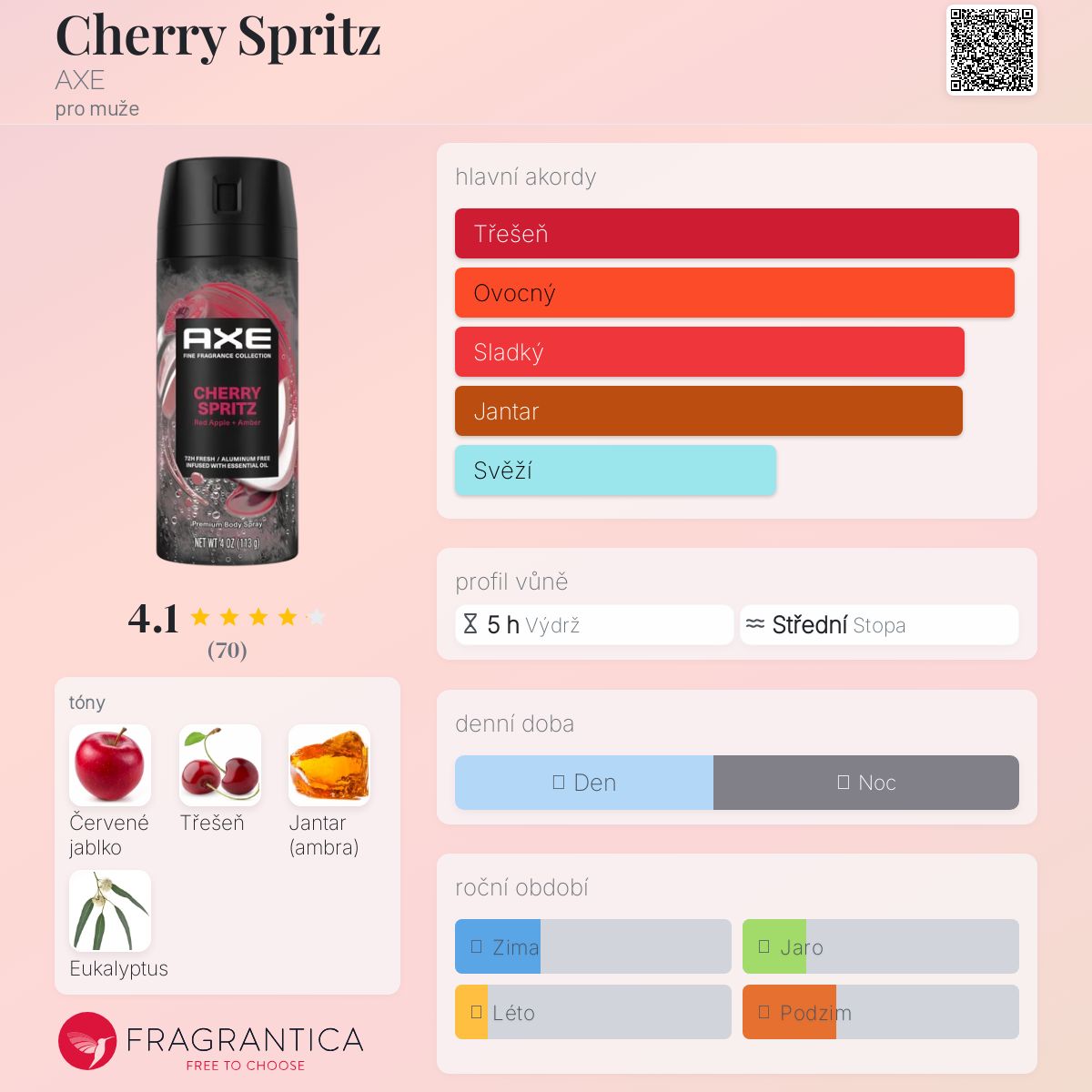 Cherry Spritz podle AXE je Aromatic Fruity vůně pro muže. Toto je nová vůně. Cherry Spritz byl/a uveden/a v roce 2025.