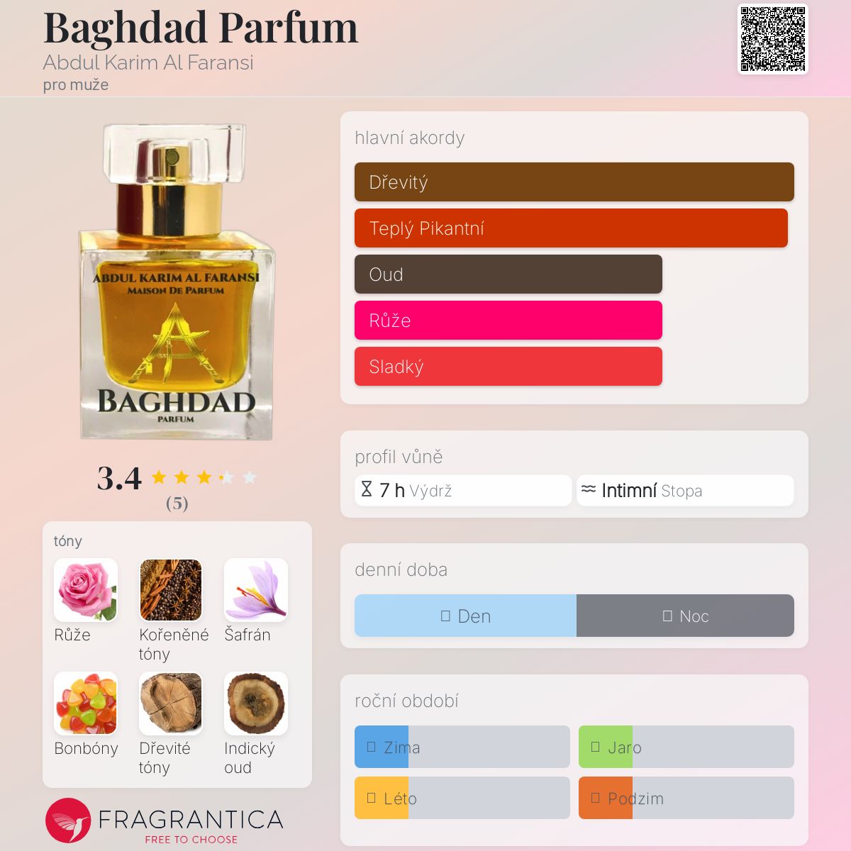 Baghdad Parfum podle Abdul Karim Al Faransi je vůně pro muže. Baghdad Parfum byl/a uveden/a v roce 2018. "Nosem" za touto vůní je Anthony Abdul Karim Marmin.