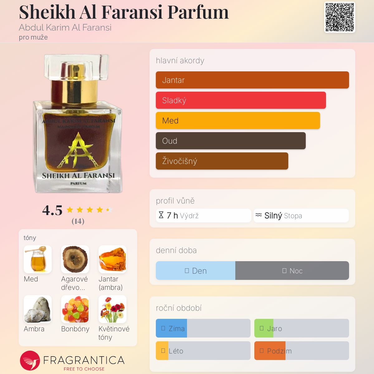 Sheikh Al Faransi Parfum podle Abdul Karim Al Faransi je vůně pro muže. Sheikh Al Faransi Parfum byl/a uveden/a v roce 2018. "Nosem" za touto vůní je Anthony Abdul Karim Marmin.