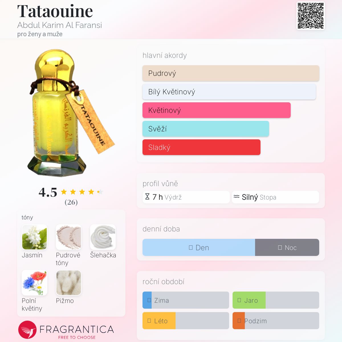 Tataouine podle Abdul Karim Al Faransi je vůně pro ženy a muže. Tataouine byl/a uveden/a v roce 2017. "Nosem" za touto vůní je Anthony Abdul Karim Marmin.