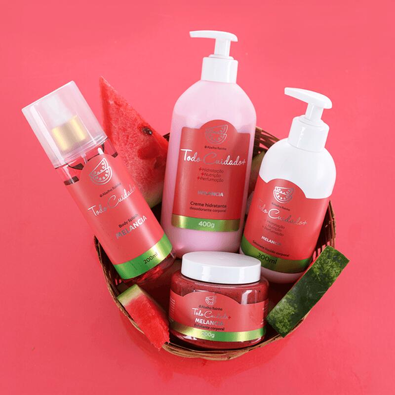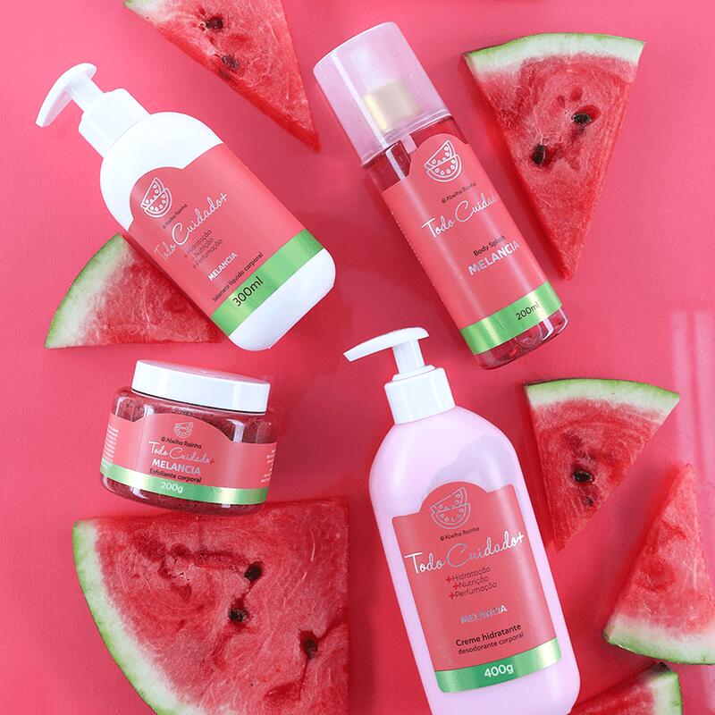 Todo Cuidado + Melancia podle Abelha Rainha je Floral Fruity vůně pro ženy. Toto je nová vůně. Todo Cuidado + Melancia byl/a uveden/a v roce 2025. Vrchní tóny jsou Maliny, Jablko, Granátové jablko a Vodní meloun; střední tóny jsouFialka a Liči ; základní tóny jsou Pižmo a Jahoda.