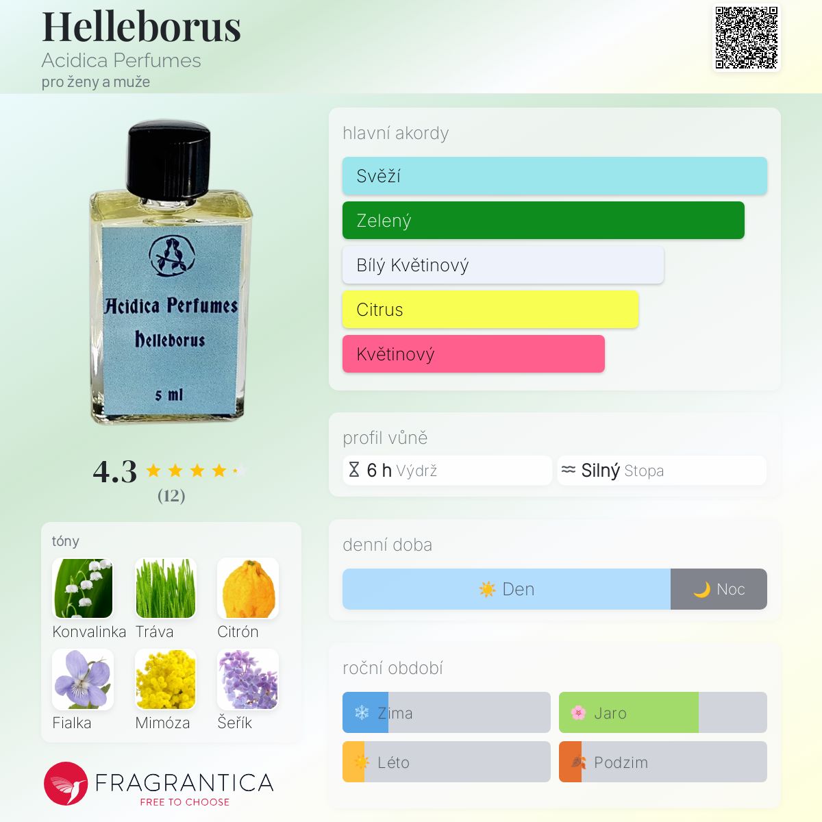 Helleborus podle Acidica Perfumes je Floral Woody Musk vůně pro ženy a muže. Helleborus byl/a uveden/a v roce 2019. "Nosem" za touto vůní je Elena Markova.