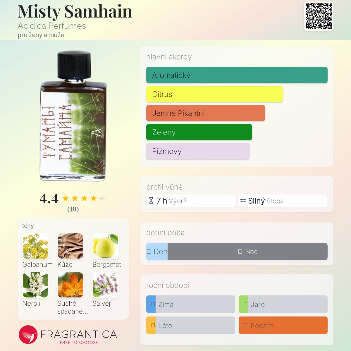 Misty Samhain podle Acidica Perfumes je vůně pro ženy a muže. Misty Samhain byl/a uveden/a v roce 2011. "Nosem" za touto vůní je Elena Markova.