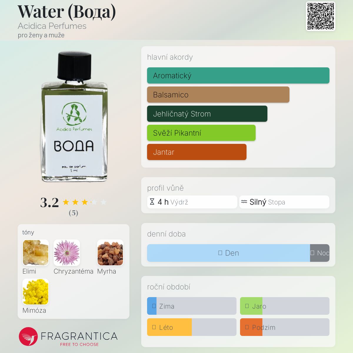 Water (Вода) podle Acidica Perfumes je Floral Aquatic vůně pro ženy a muže. Water (Вода) byl/a uveden/a v roce 2018. "Nosem" za touto vůní je Elena Markova.