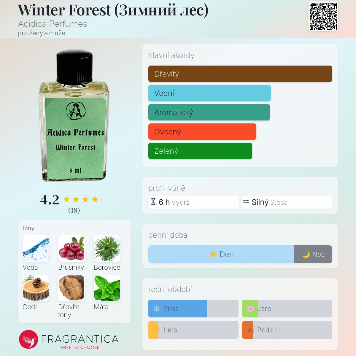 Winter Forest (Зимний лес) podle Acidica Perfumes je Woody Aromatic vůně pro ženy a muže. Winter Forest (Зимний лес) byl/a uveden/a v roce 2020. "Nosem" za touto vůní je Elena Markova.