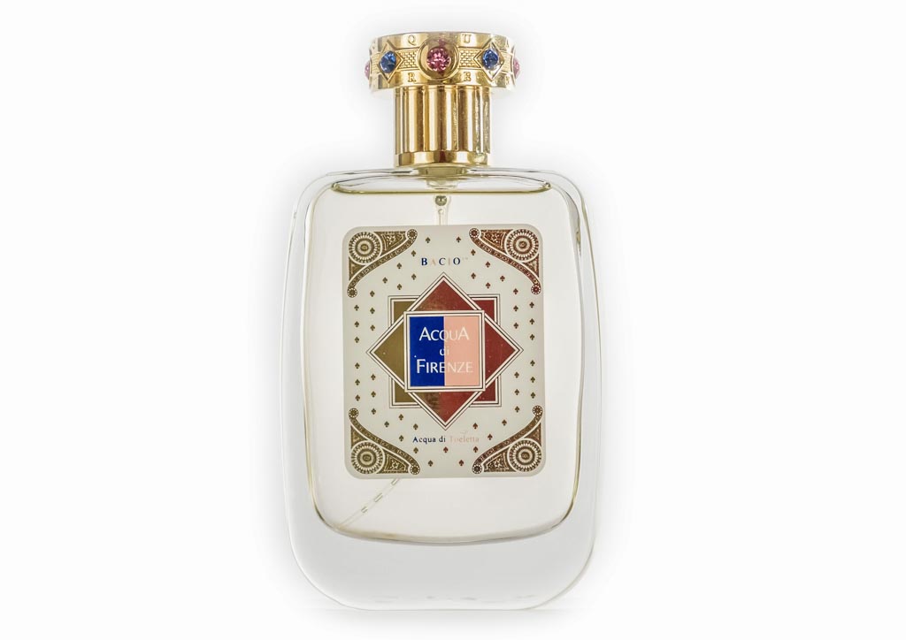 Bacio podle Acqua di Firenze je Floral Woody Musk vůně pro ženy a muže. Vrchní tóny jsou Citrón, Karafiát a Labdanum; střední tóny jsouRůže, Citronová verbena, Karafiát, Gardénie, Pivoňka, Fialka, Jasmín a Orchidej ; základní tóny jsou Santalové dřevo, Kůže, Pižmo, Vetiver, Pačuli a Jantar (ambra).