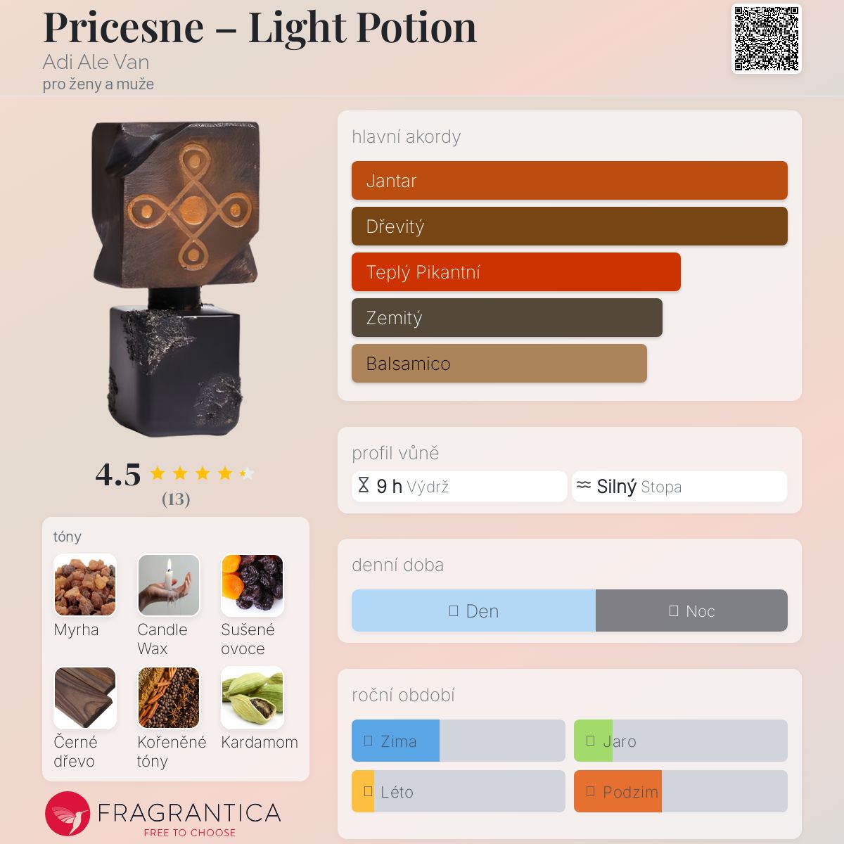 Pricesne – Light Potion podle Adi Ale Van je vůně pro ženy a muže. Toto je nová vůně. Pricesne – Light Potion byl/a uveden/a v roce 2024. "Nosem" za touto vůní je Adi ale Van.