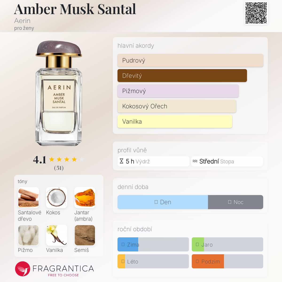 Amber Musk Santal podle Aerin je Orientální Woody vůně pro ženy. Toto je nová vůně. Amber Musk Santal byl/a uveden/a v roce 2024.