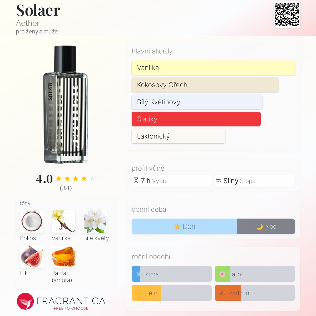 Solaer podle Aether je vůně pro ženy a muže. Toto je nová vůně. Solaer byl/a uveden/a v roce 2024. "Nosem" za touto vůní je Julien Rasquinet.