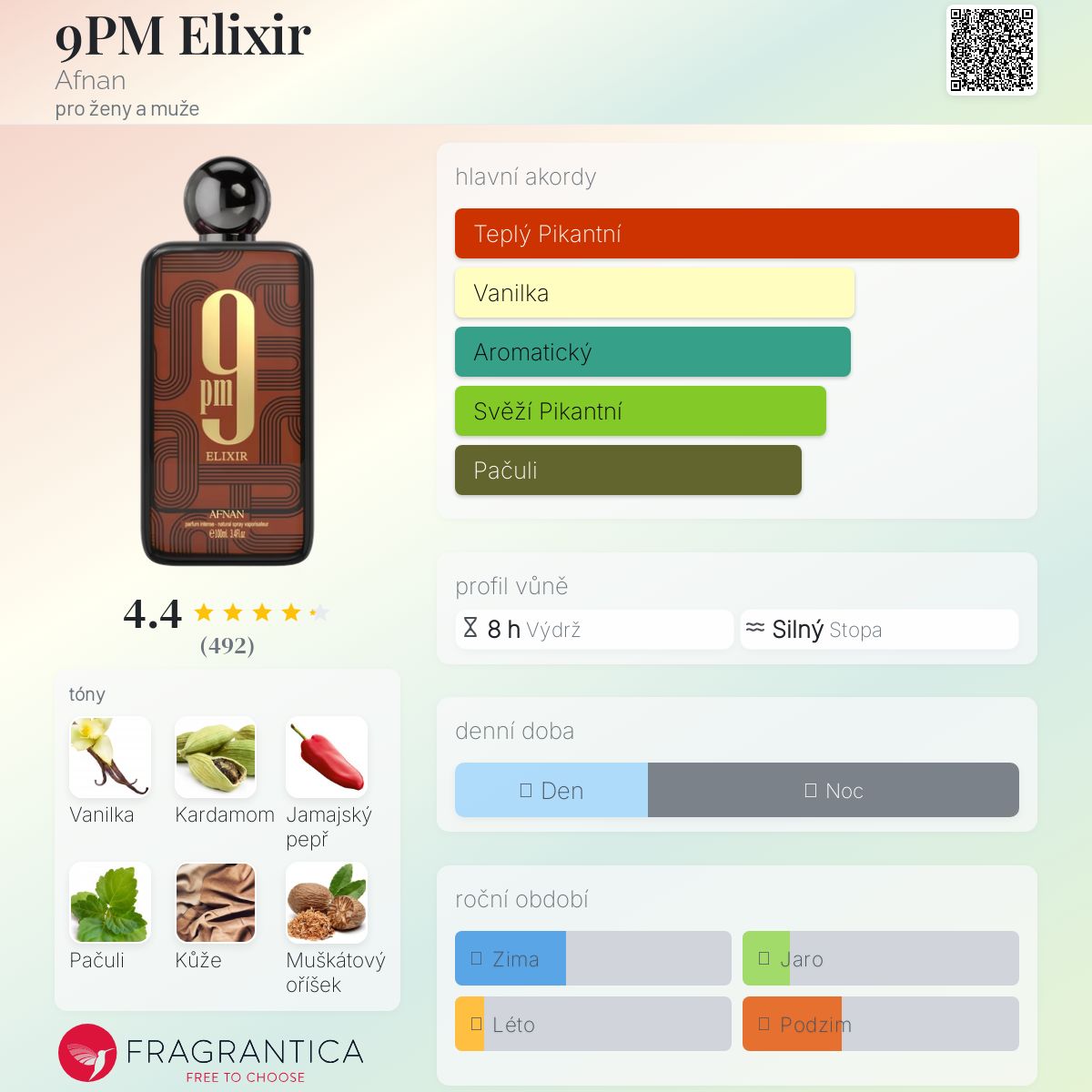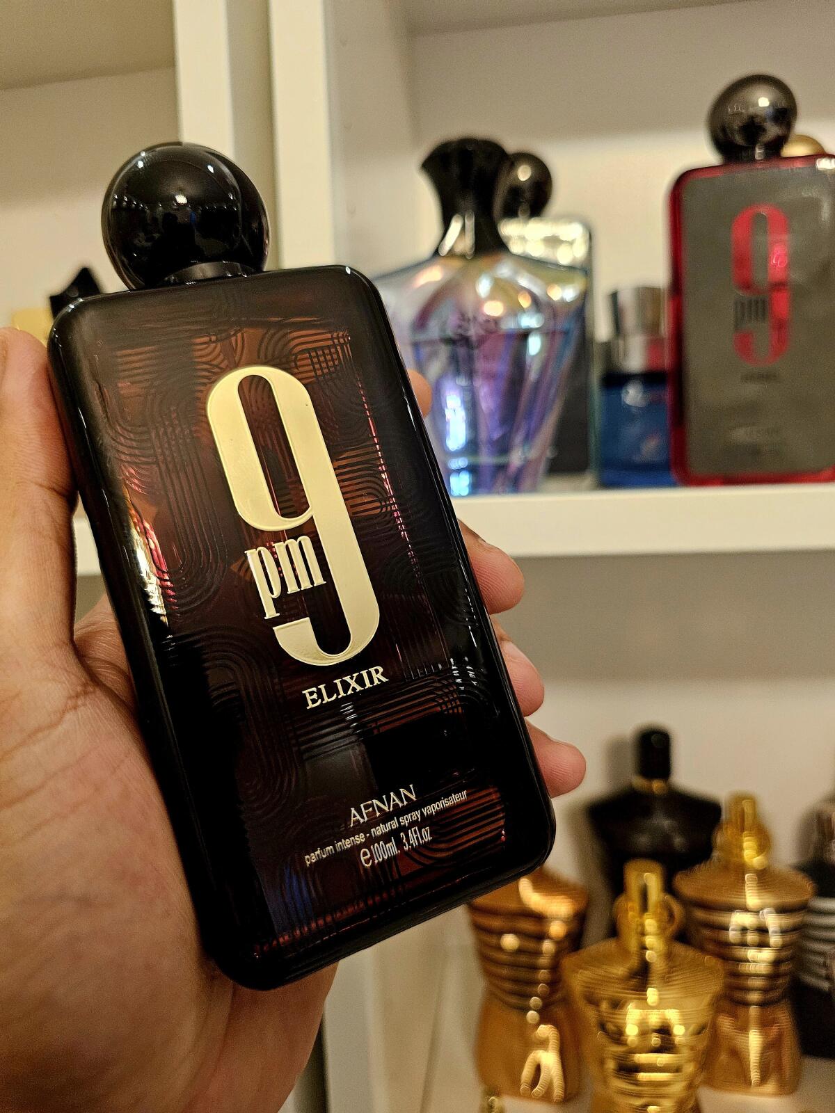9PM Elixir podle Afnan je Orientální Spicy vůně pro ženy a muže. Toto je nová vůně. 9PM Elixir byl/a uveden/a v roce 2025. "Nosem" za touto vůní je Imran Fazlani. Vrchní tóny jsou Kardamom, Muškátový oříšek a Elimi; střední tóny jsouJamajský pepř, Kůže a Levandule ; základní tóny jsou Vanilka, Pačuli, Labdanum a Skalní růže.