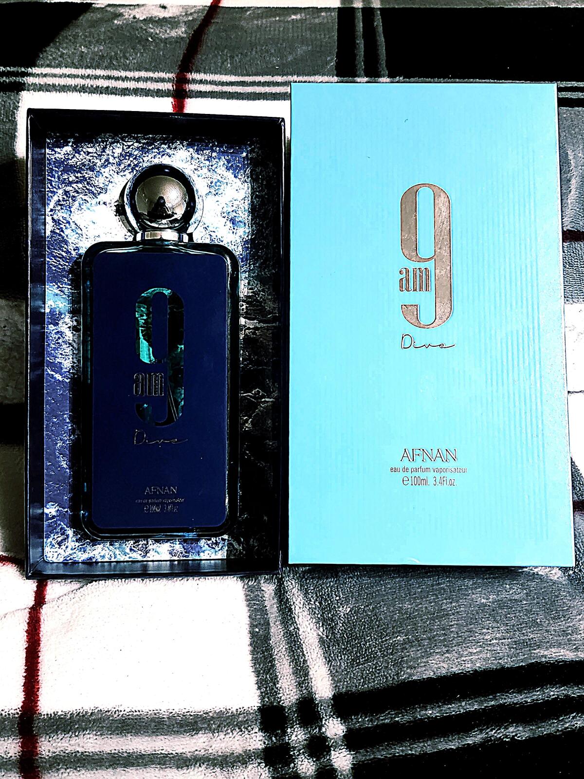 9am Dive podle Afnan je Aromatic Aquatic vůně pro ženy a muže. 9am Dive byl/a uveden/a v roce 2022. "Nosem" za touto vůní je Imran Fazlani. Vrchní tóny jsou Citrón, Máta, Černý rybíz a Růžový pepř; střední tóny jsouJablko, Cedr a Kadidlo ; základní tóny jsou Zázvor, Santalové dřevo, Pačuli a Jasmín.