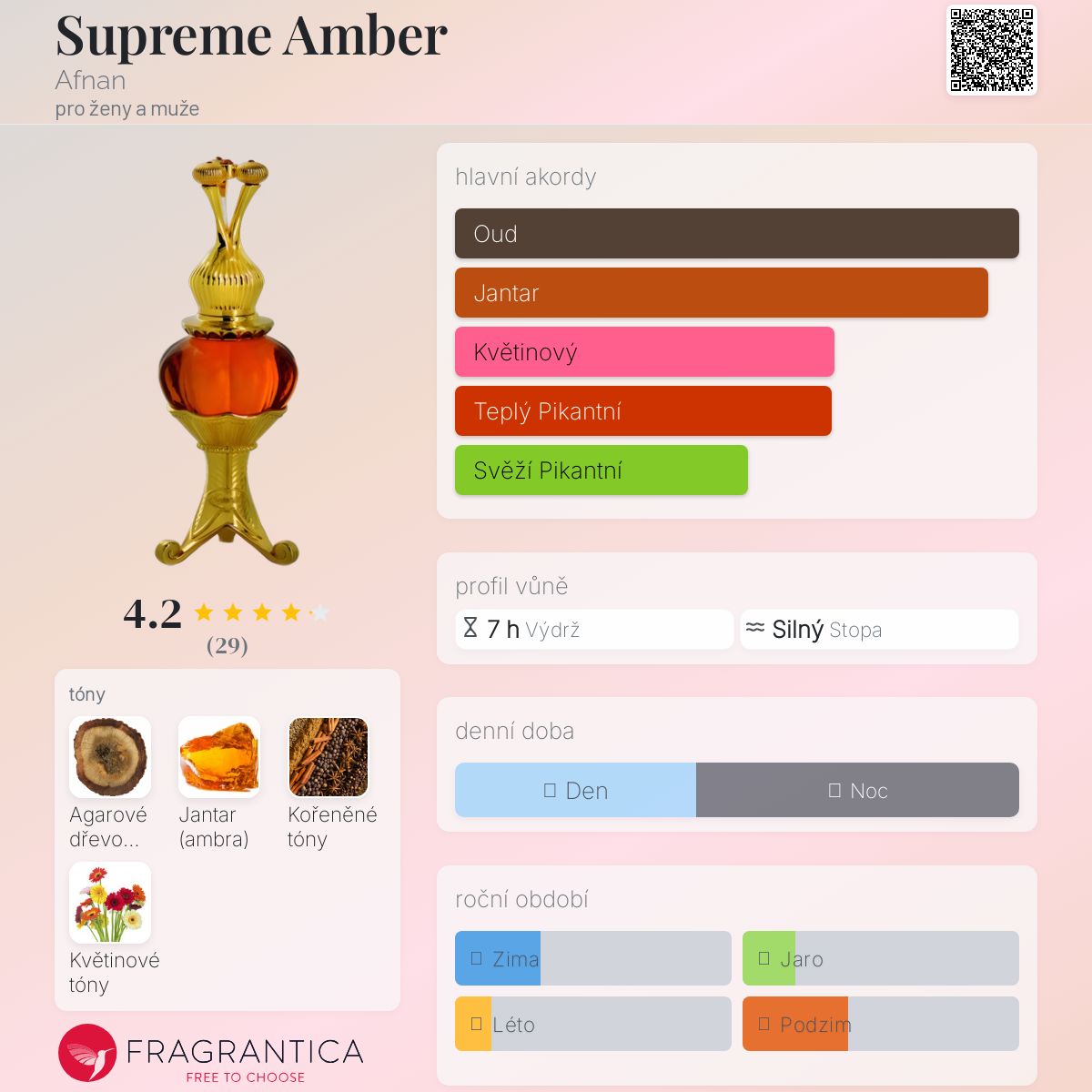 Supreme Amber podle Afnan je Orientální vůně pro ženy a muže. Supreme Amber byl/a uveden/a v roce 2019.