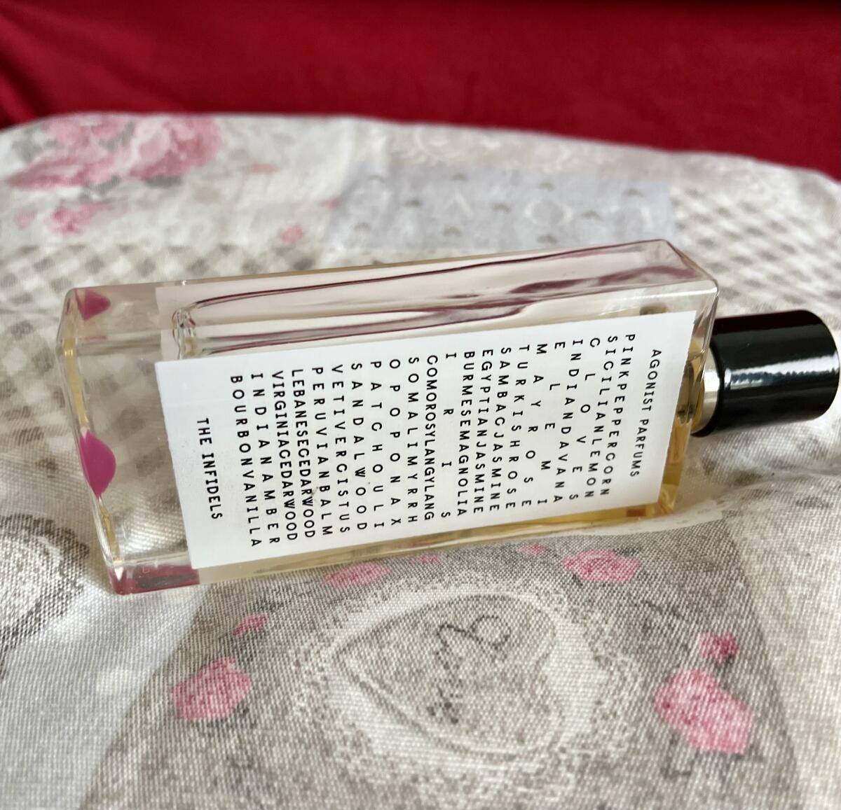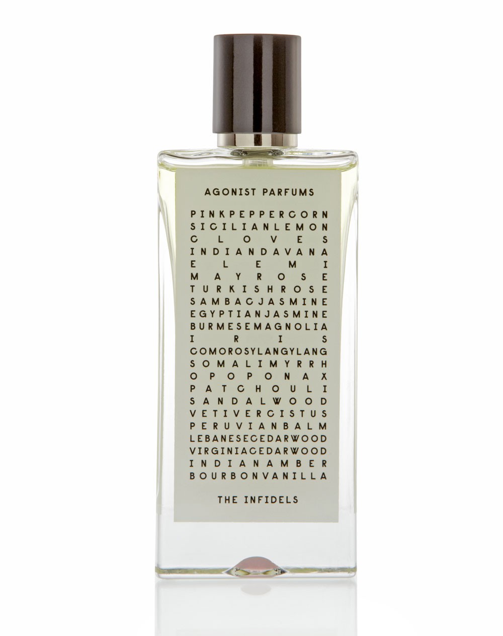 The Infidels podle Agonist je Orientální vůně pro ženy a muže. Vrchní tóny jsou Elimi, Růžový pepř, Hřebíček, Sicilský citron a Davana; střední tóny jsouMyrha, Opoponax, Květná růže, Turecká růže, Magnólie, Kosatec, Ylang-Ylang, Jasmín Sambac a Egyptský jasmín ; základní tóny jsou Jantar (ambra), Santalové dřevo, Peruánský balzám, Bourbonská vanilka, Cedr, Virginský cedr, Pačuli a Vetiver.