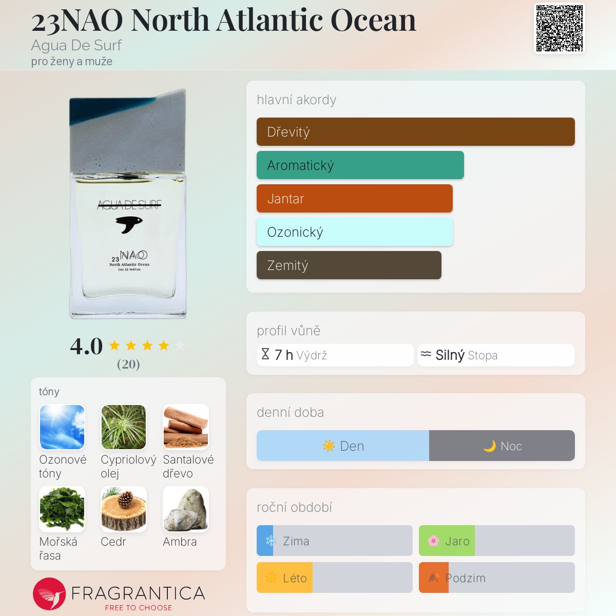 23NAO North Atlantic Ocean podle Agua De Surf je Woody Spicy vůně pro ženy a muže. 23NAO North Atlantic Ocean byl/a uveden/a v roce 2018. "Nosem" za touto vůní je Ramon Monegal.