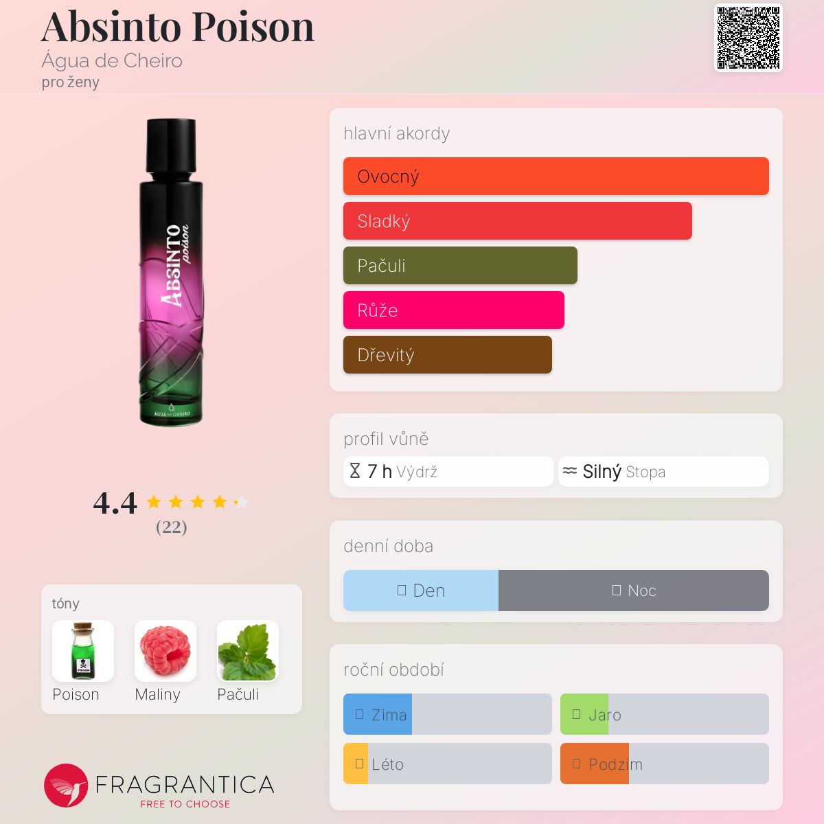Absinto Poison podle Água de Cheiro je Floral vůně pro ženy. Absinto Poison byl/a uveden/a v roce 2022. Vrchní tón je Maliny ; střední tón jeJed ; základní tón je Pačuli.