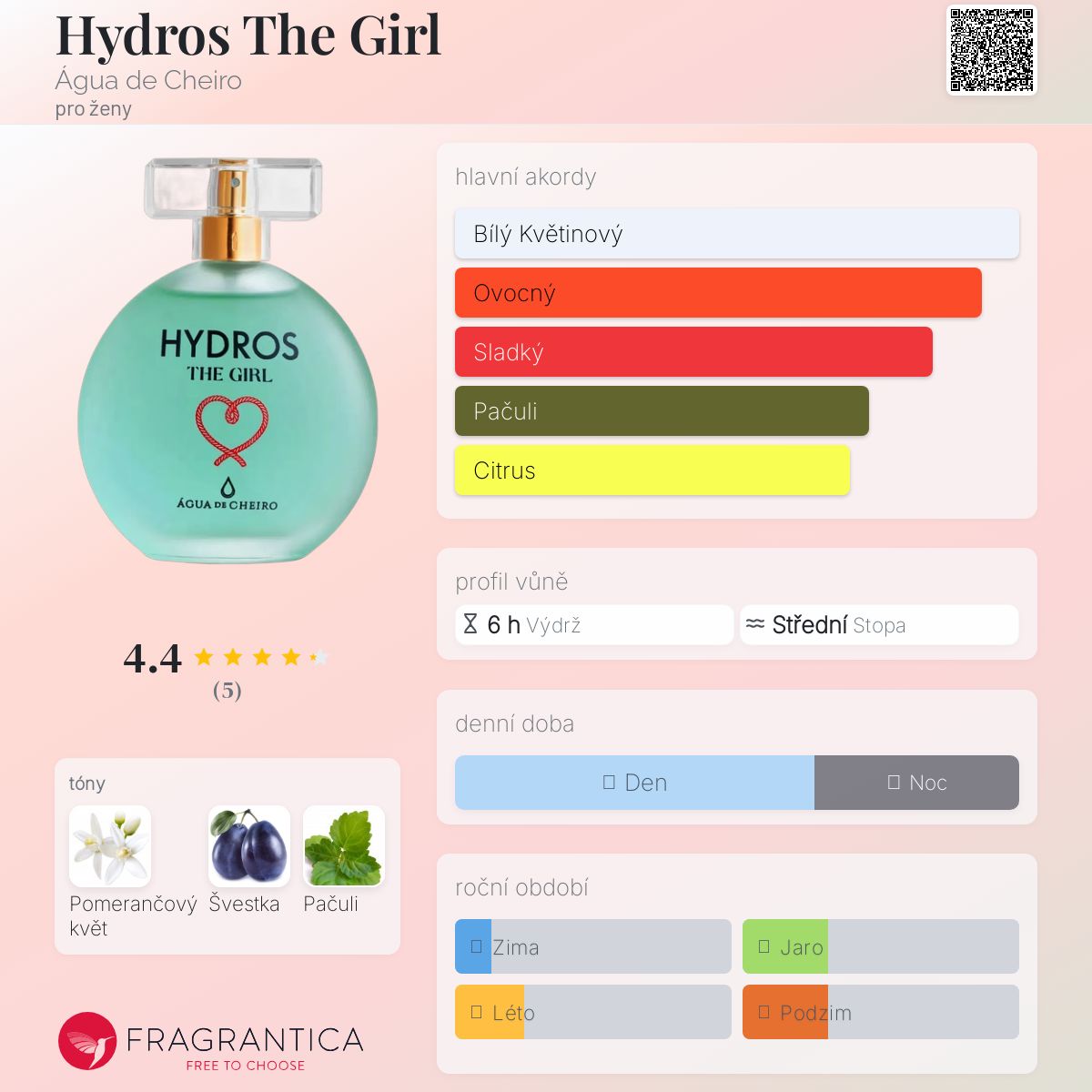 Hydros The Girl podle Água de Cheiro je Floral vůně pro ženy. Hydros The Girl byl/a uveden/a v roce 2023. Vrchní tón je Švestka ; střední tón jePomerančový květ ; základní tón je Pačuli.
