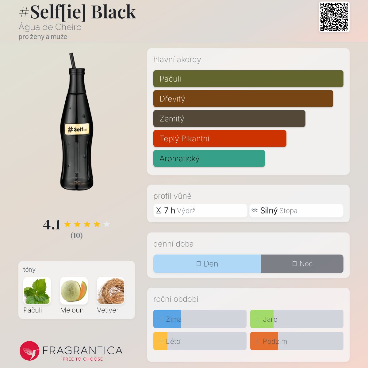 #Self[ie] Black podle Água de Cheiro je Aromatic Fougere vůně pro ženy a muže. #Self[ie] Black byl/a uveden/a v roce 2022. "Nosem" za touto vůní je Marion Costero. Vrchní tón je Meloun ; střední tón jePačuli ; základní tón je Vetiver.
