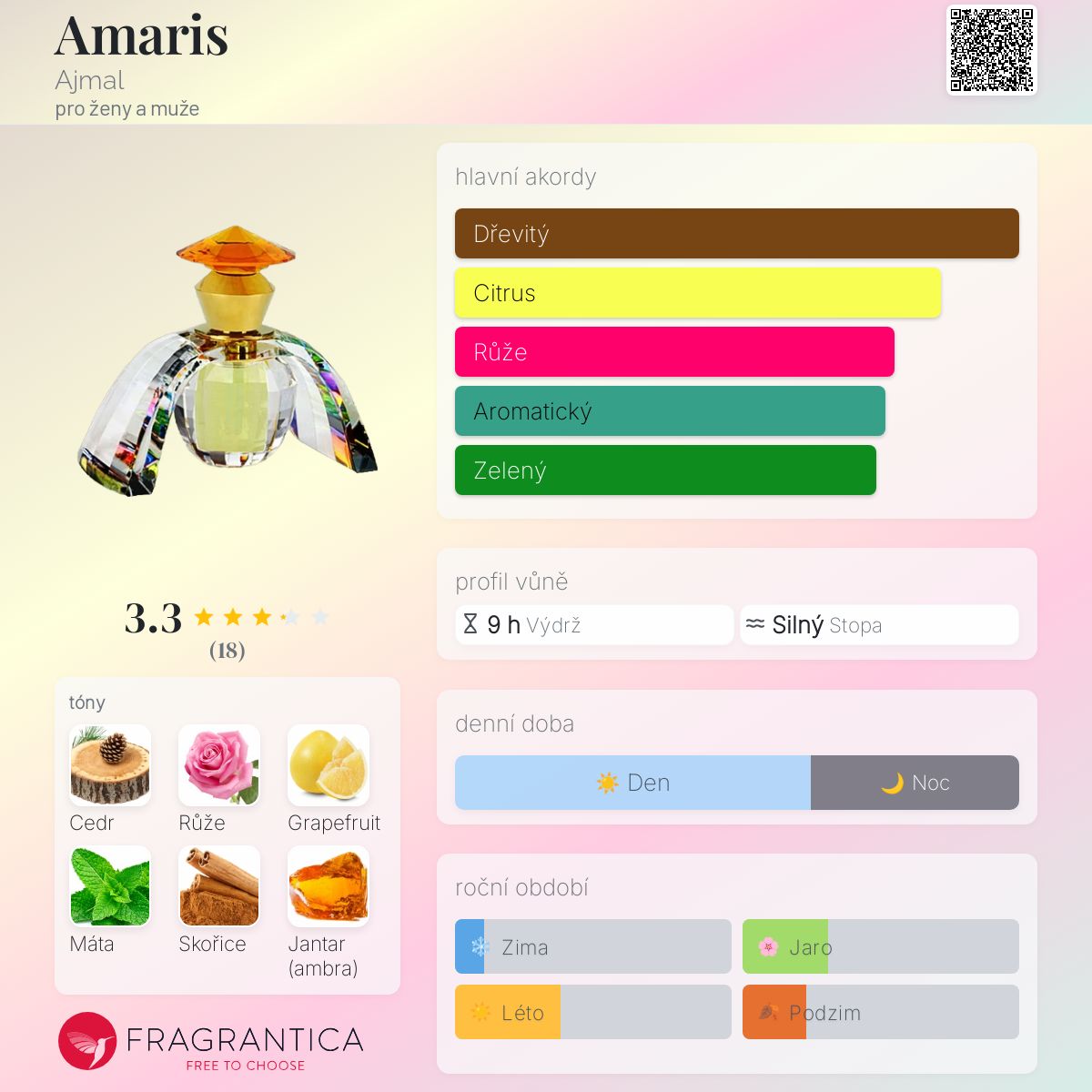 Amaris podle Ajmal je Orientální vůně pro ženy a muže.