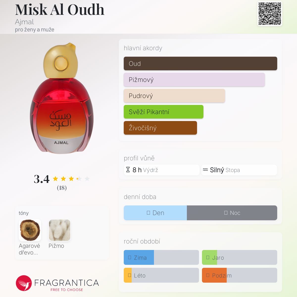 Misk Al Oudh podle Ajmal je Orientální vůně pro ženy a muže. Misk Al Oudh byl/a uveden/a v roce 2011. "Nosem" za touto vůní je Nazir Ajmal.
