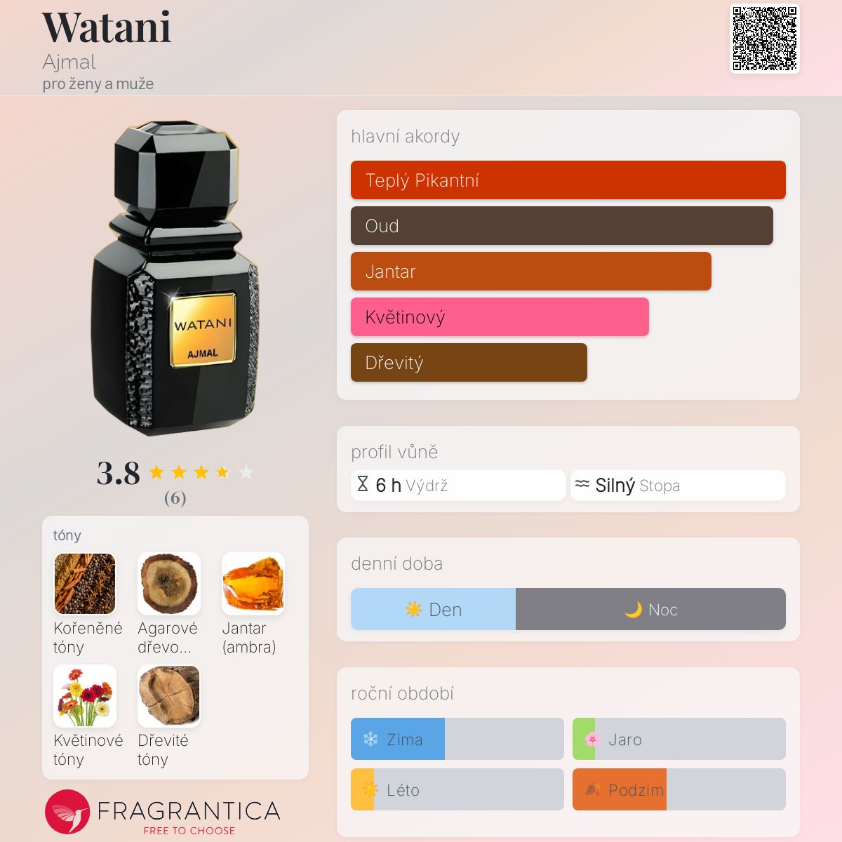 Watani podle Ajmal je Orientální Spicy vůně pro ženy a muže. Watani byl/a uveden/a v roce 2014.